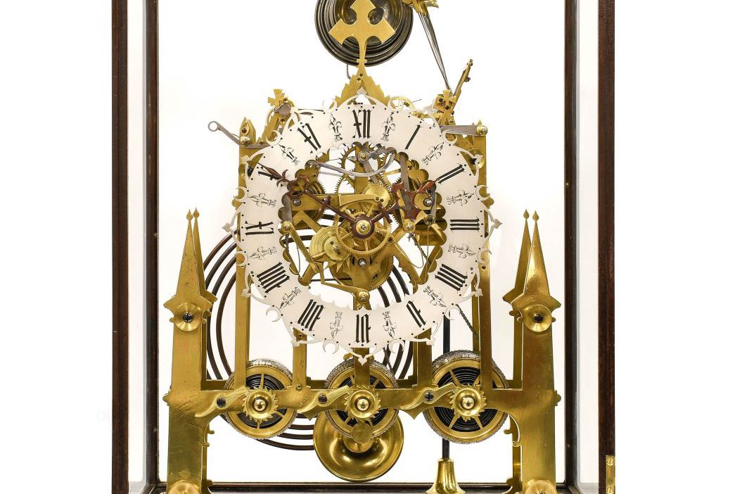 Notable clocks attracted good levels of interest, and the top clocks in the sale included a circa 1860 fine brass quarter chiming skeleton clock, attributed to either Evans of Handsworth or Smiths of Clerkenwell (sold for £5,200), a rare 1983 150th Anniversary Atmos clock by Jaeger LeCoultre (sold for £3,200), and a good circa 1913 Grande Sonnerie striking and repeating alarm carriage clock by Chas Frodsham (sold for £2,500).