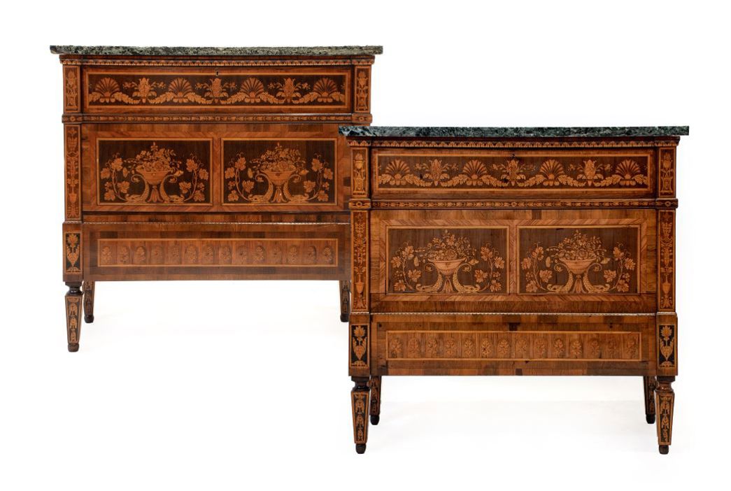 Strong results were seen for fine pieces of furniture in the sale, with a pair of Milanese Neo-Classical Commodes in the manner of Giuseppe Maggiolini, by repute from the 1947 Swinton Park Sale, selling for £7,500, a 20th century extending Jupe-style table selling for £7,000, and a good pair of Louis XV/Transitional Style late 19th century vitrines selling for £7,500. Also selling well were a late 19th century French kingwood and ormolu-mounted vitrine (sold for £5,500), a fine George III amboyna concertina-action card table (sold for £3,900), and a pair of 19th century mahogany and brass-bound barrels (sold for £4,800).