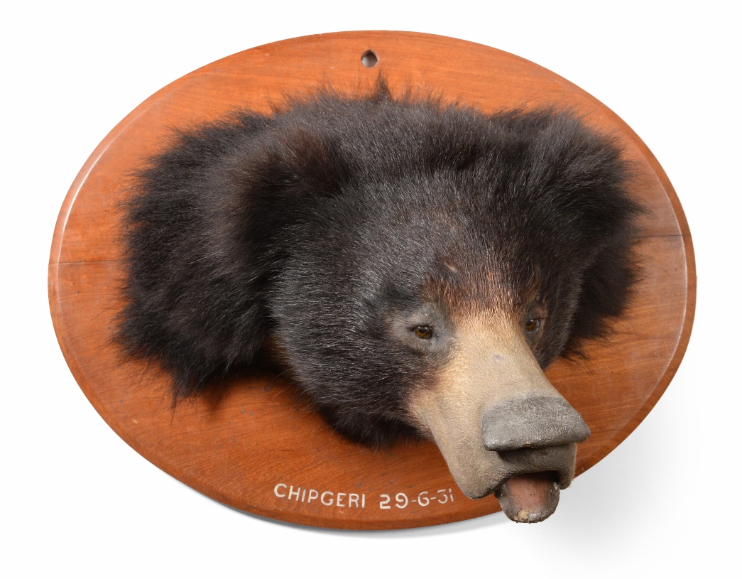 Also by Van Ingen and Van Ingen is a very interesting Sloth Bear c1931, which is sold with the original Shikar’s game book containing entries documenting the hunt and the original zinc-lined packing crate with stencilled script relating to the first owner (Estimate: £600-800). The bear was taken by Lieut. Thomas Frederick James Collins in Chipgeri, North West India on 29th June 1931.
