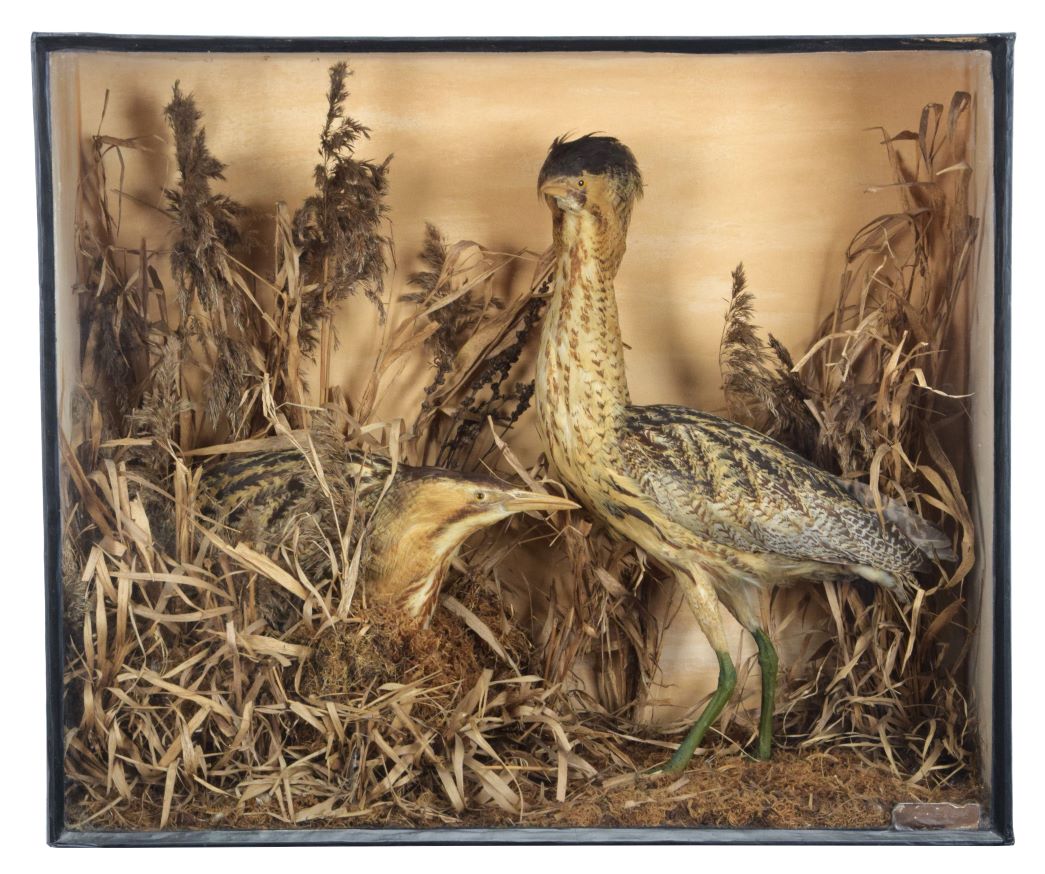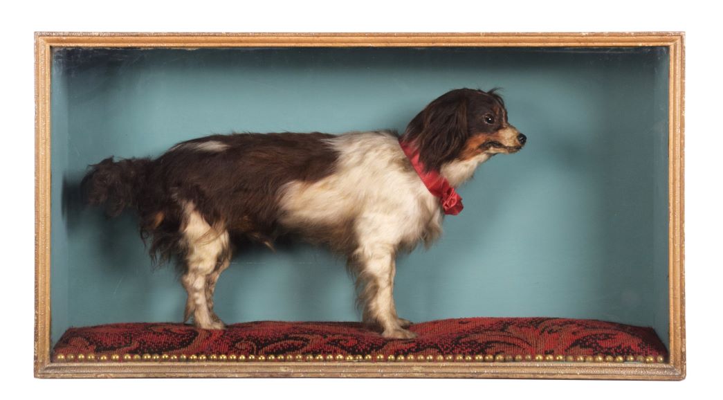 An array of period and fine modern taxidermy will be coming under the hammer in 7th August Natural History and Taxidermy Sale at Tennants Auctioneers. The sale will include three good Private Collections, and opening the sale will be the Harold Soar Collection. Soar was born in Ticknall, south Derbyshire, and was an avid collector from an early age, having grown up surrounded by his family’s taxidermy specimens. He collected throughout his life, from both auctions and local taxidermists, and he had a keen interest in local and family history. Highlights of his collection include A Large Late Victorian Diorama of Sea and Estuary Birds, made circa 1880-1900 (estimate: £500-700 all figures exclude buyer’s premium), A Victorian Cased Pair of Eurasian Bitterns by John Sayer of Norwich (estimate: £450-650), and A Cased Late Victorian King Charles’ Spaniel “Charlie”, made circa 1860-1880 (estimate: £500-700). “Charlie”, according to legend, lived in the Wheel Inn, Ticknall, learned to collect coins that had fallen into the sawdust covering the floor and remove them to the garden to be retrieved later by the landlord. One fatal day, Charlie ran up the garden path, and the landlord, John Mason, through a stick for him to retrieve; sadly, it struck Charlie on the head, which proved fatal.