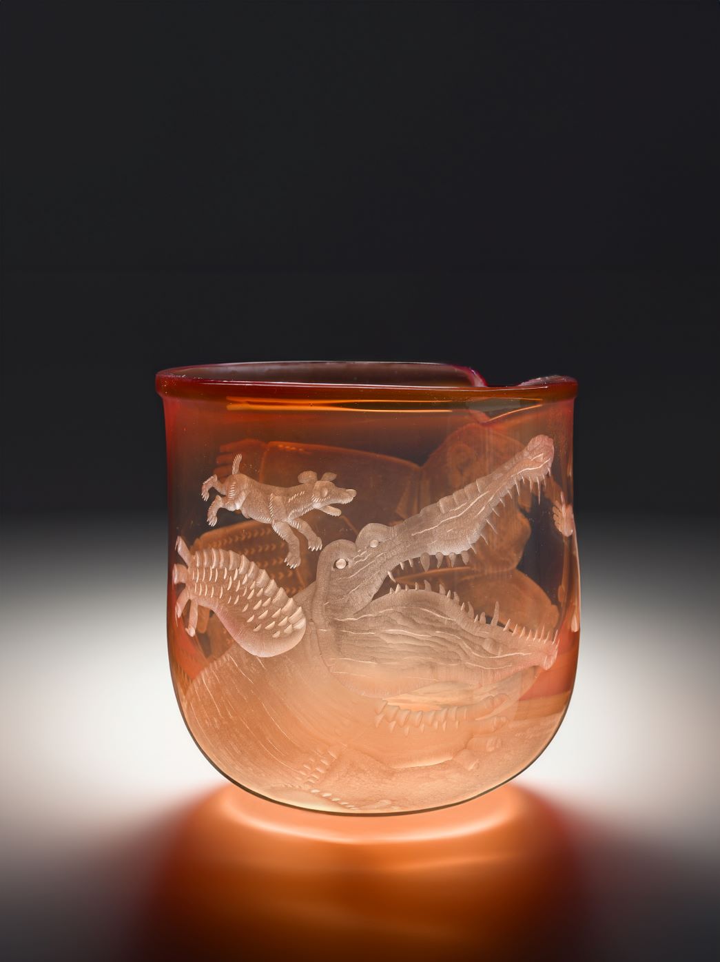 Further notable results included a charming wheel-engraved glass by Ronald Pennell entitled “In Between”, depicting a crocodile as the embodiment of the forces of nature fighting an everyman figure (sold for £1,700), and two Swedish Art Nouveau patinated bronze vases by Hugo Elmqvist, which garnered international interest before selling for £1,900 and £950.
