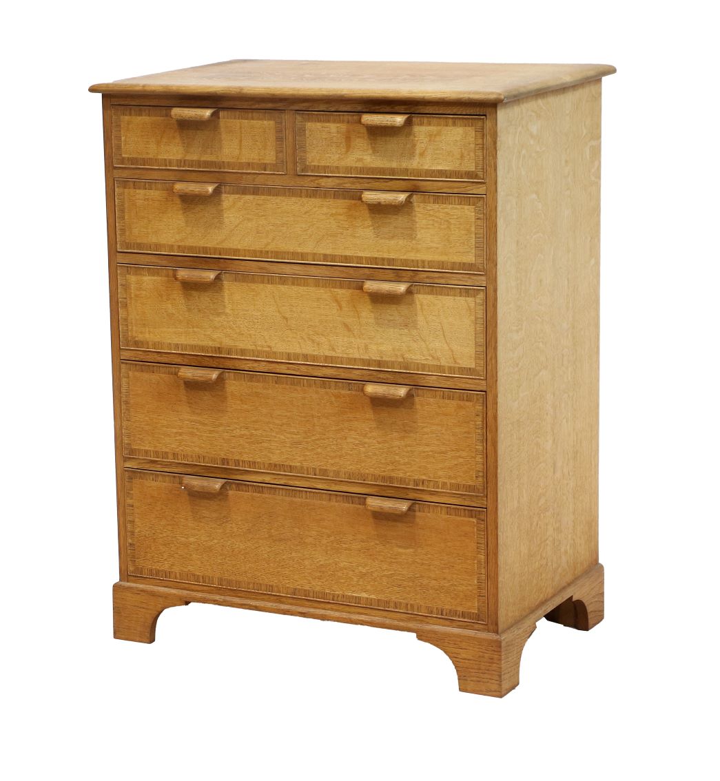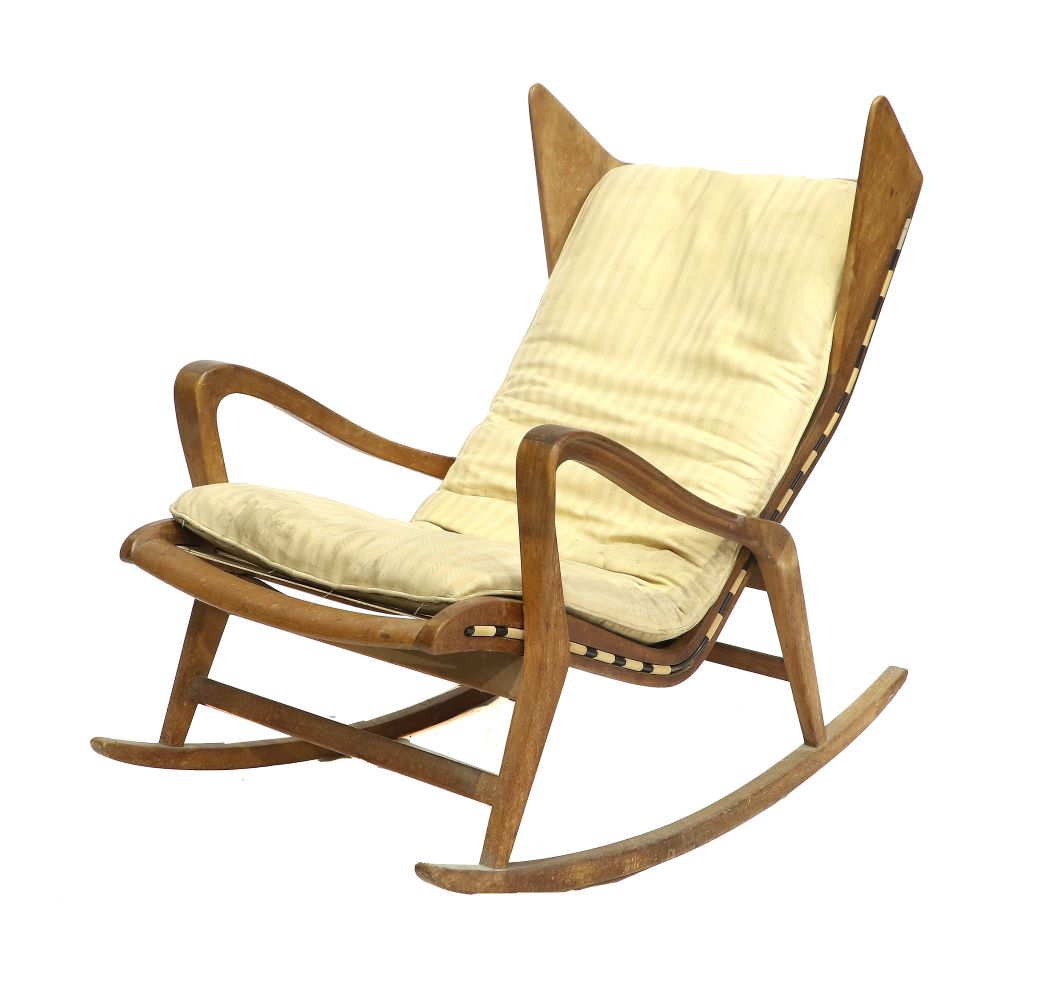 The popularity of Arts and Crafts furniture continued with the sale of a private collection of furniture by Stanley Webb Davies, commissioned in the 1940s and 1950s by Mrs Annie Winifred Philipson of Flookburgh, Cumbria and which had passed down through her descendants. The collection, which comprised six lots, sold for well above estimate for £6,550, and included a Chestnut Bookcase (sold for £1,800), and Two English Oak Occasional Tables (sold for £1,300). From another vendor came a 1950s Walnut Nest of Three Tables, which sold for £1,100. Beautifully made furniture with fine craftsmanship continues to garner much interest, and an English Oak Crossbanded Chest of Drawers made by an unknown maker in 1981 attracted much interest, selling for £1,100 against an estimate of £250-350. Also selling well was a Walnut Rocking Chair designed by Cassina Technical Group circa 1955 (sold for £1,900). The chair showed points of similarity with known designs by Gio Ponti, who designed several chairs for Cassina during his career.
