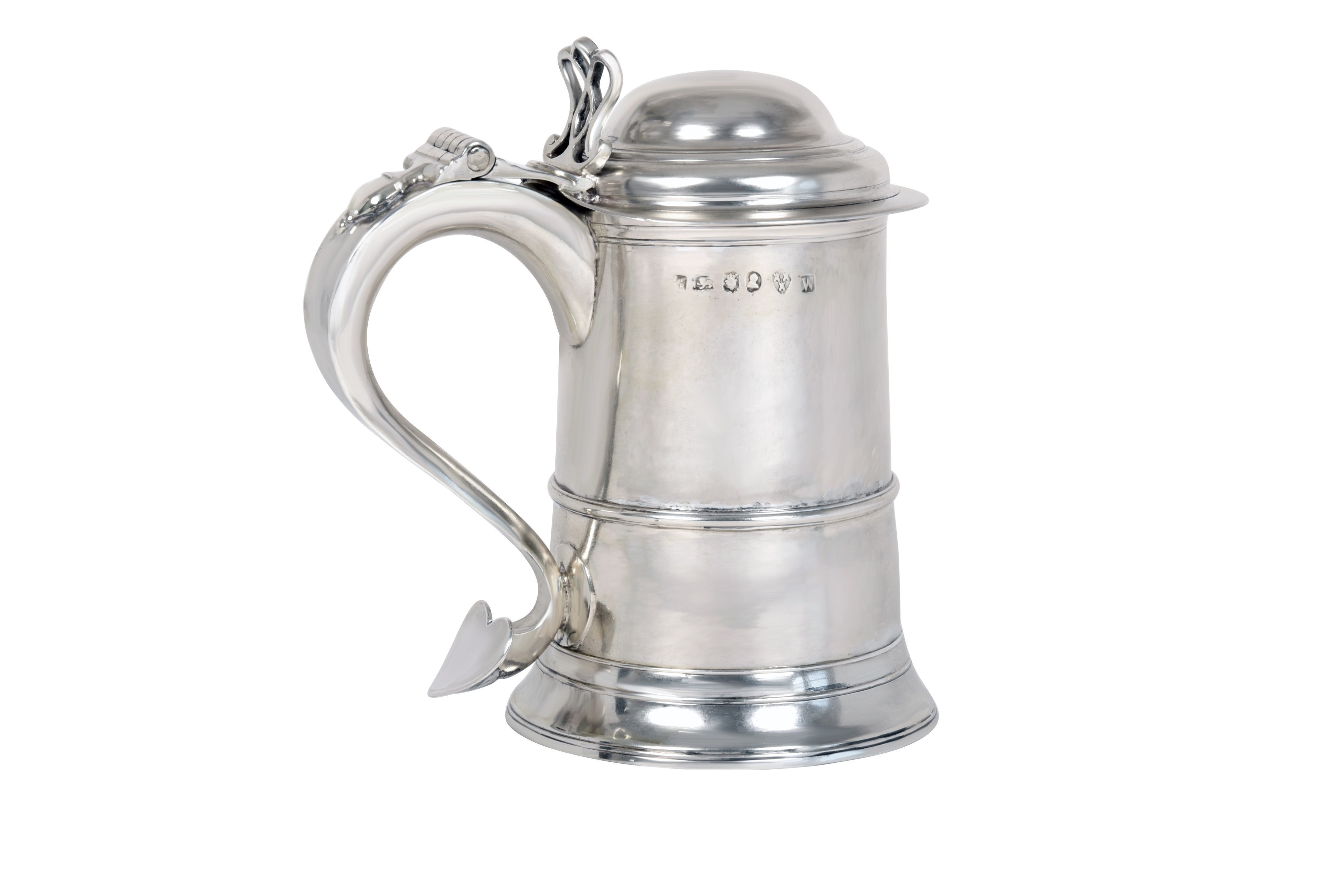 Following, William III’s Act of 1696 during the Great Recoinage, legislation was passed to raise the standard of wrought plate in coins above that of their sterling value, and in doing so, address the clipping of silver coins – a serious offence reducing the weight of a coin and undermining the country’s currency. This proved unsuccessful and meant that all silver now had to be assayed (tested for quality and ingredients) in London, hindering the provincial silversmiths. Combatting this, the Newcastle Assay Office was established in 1702 so that “an Assay-master may be appointed for assaying and marking wrought plate in the Said Town of Newcastle”. From 1702, Newcastle silversmiths had to register their private marks at the Newcastle Assay Office, and all their silver objects had to be assayed, and then marked with the Newcastle mark of three castles.