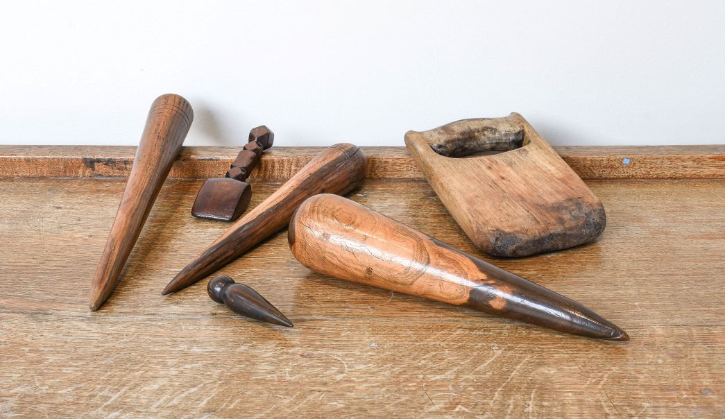 On offer in the sale, too, was the David and Hilary Hide Collection of Treen and Metalware, which achieved a total hammer price of £8,610 for the 49 lots. Highlights of the collection included a group of Sail and Ropemaking Tools, which sold for £200, and a Pair of George III Carved and Turned Mahogany Candlesticks and a Pair of Olive Wood ‘Brighton Bun’ Travelling Candlesticks, which sold for £380.