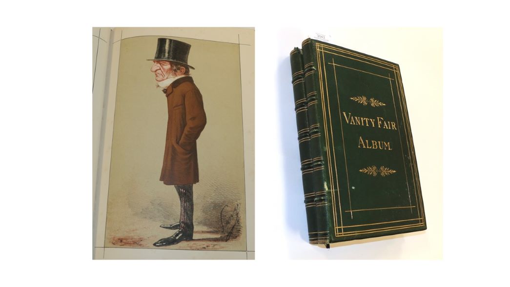 Further interesting lots in the sale include ‘Transactions of the Guild and School of Handicraft, Vol. 1’, 1890, with manuscript inscriptions by the volume’s editor and founder of the Guild C.R. Ashbee. Ashbee, who was one of the leading figures of the Arts and Crafts movement, inscribed on the flyleaf is a verse from Rudyard Kipling’s ‘The Conundrum of the Workshops’ (estimate: £600-1,000). From a collection of early 20th century art books in the sale comes volumes relating to The Vorticists, on offer with an estimate of £600-1,000. The lot comprises two volumes of Wyndham Lewis’ ‘Blast, Review of the Great English Vortex’ and Ezra Pound’s ‘Gaudier-Brzeska, A Memoir’. Also of note are two volumes of the ‘Vanity Fair Album, A Show of Sovereigns, Statesmen, Judges and Men of the Day’ by Juhu Junior from 1870 and 1871, which are composed of rare proof copies of the Vanity Fair cartoons (estimate: £1,000-2,000).