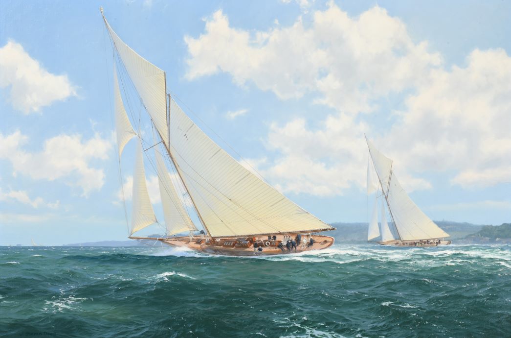 Highlights from other vendors in the sale included two further outstanding marine paintings by Yorkshire artist John Steven Dews (b. 1949). Dews was born in Beverley and is one of the most successful living maritime artists. As an avid sailor, he imbues his works with meticulous detail and realism gained from his close affinity with the sea and sailing. “Shamrock Racing, Velsheda & Britannia Thames Estuary, c.1930” sold for £20,000, and “White Heather II battling it out with Britannia off Fishburn, Cowes” sold for £11,000.