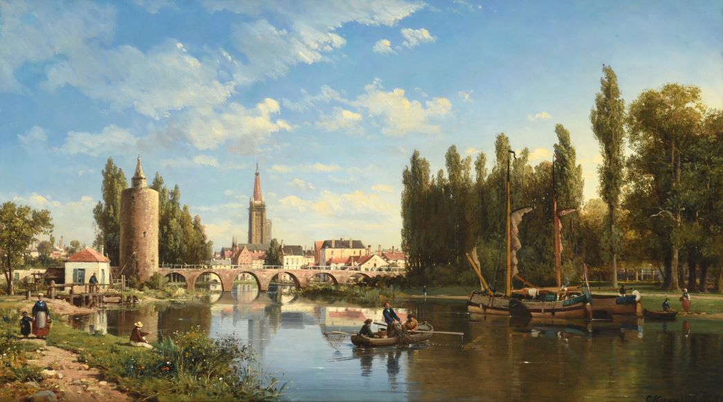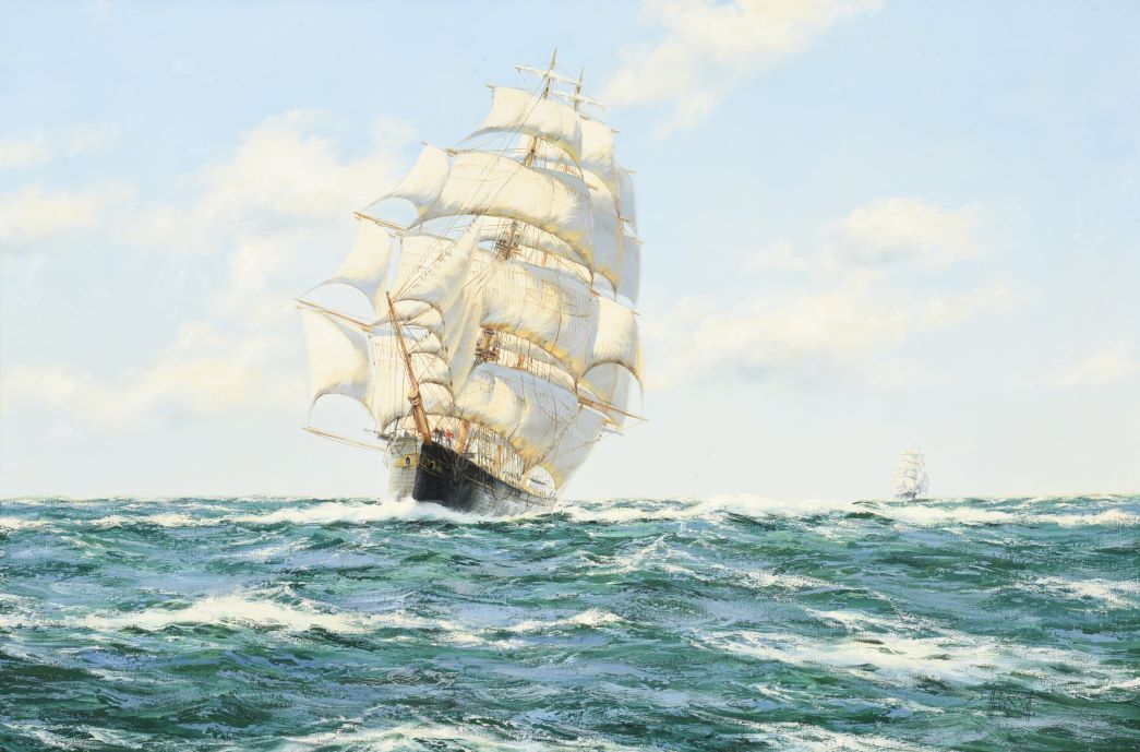 Further notable result from the collection included a painting by fellow St John’s Wood Clique artist William F Yeames (1835-1918). Yeames had a fascination with British history, particularly the Civil War, reflected in the present painting which depicts “Dr Harvey and the children of Charles I at the Battle of Edgehill” (sold for: £8,500). A top price for French artist Charles Euphraisie Kuwasseg (1838-1904) was also achieved when “Bruges” sold for £7,000 against an estimate of £3,000-5,000, and two flower still lifes by Cecil Kennedy (1905-1997) were well received selling for £9,500 apiece. Good marine paintings included “Fair Winds” by Henry Scott (1911-2005), which sold for £4,200.