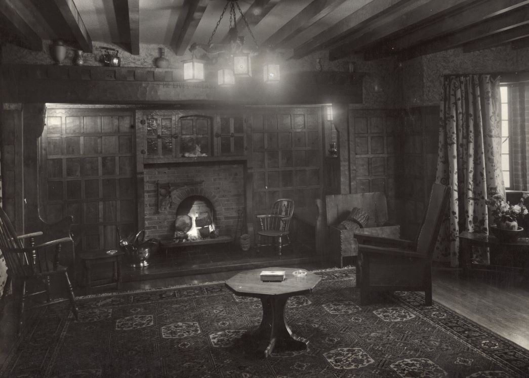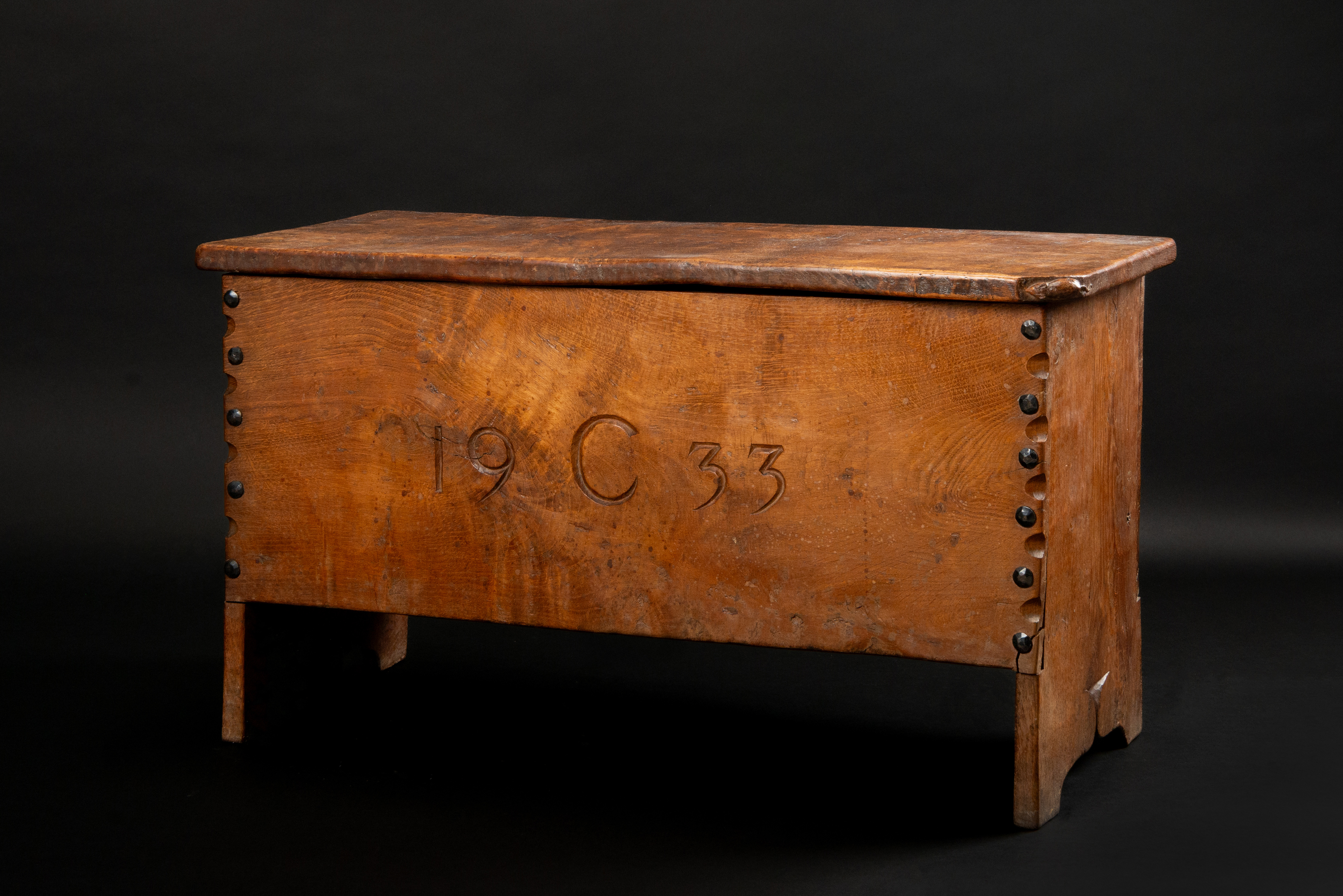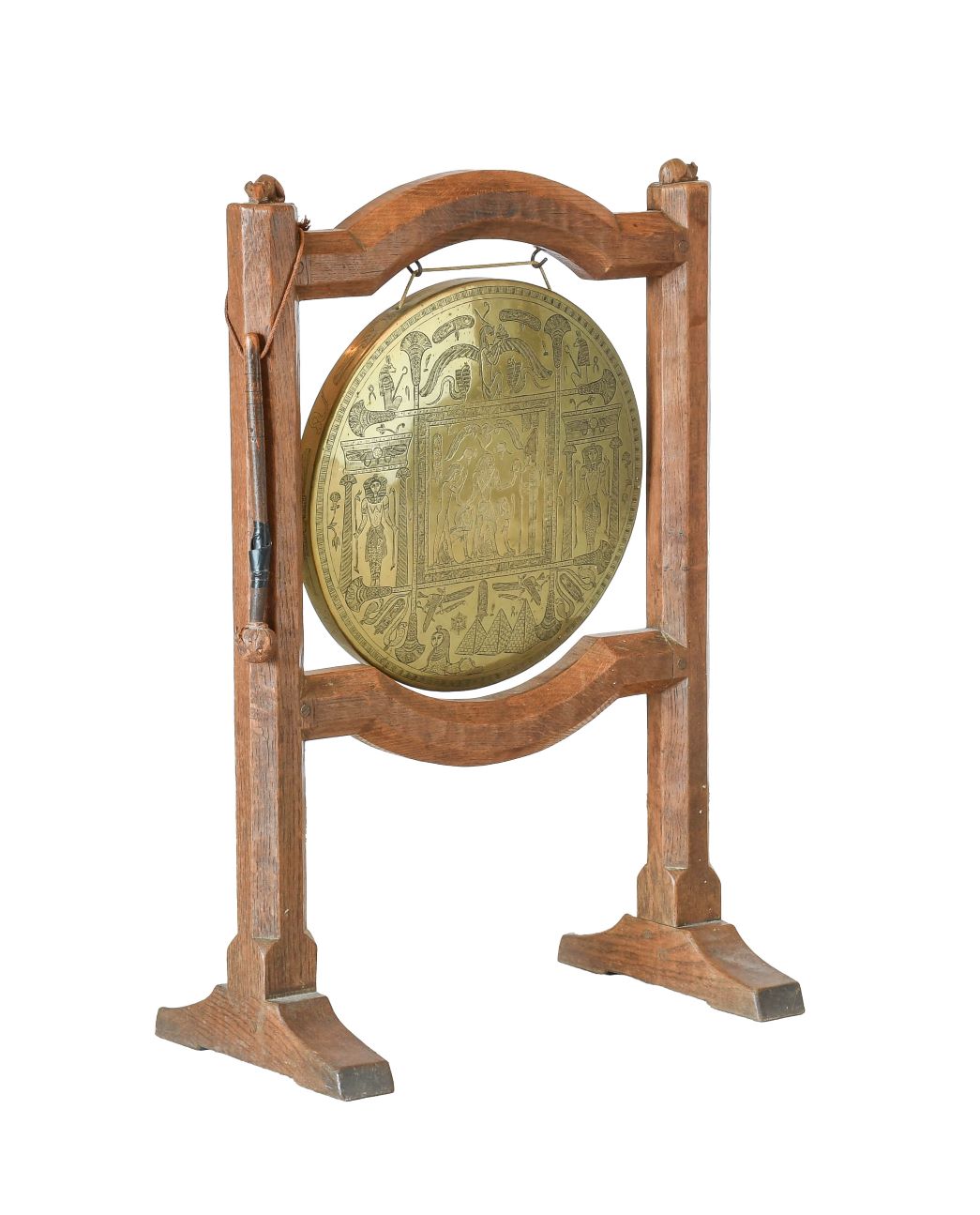 Amongst the Mouseman in the sale are two period 1930s pieces, which were made for Ronald and Lilian Crossley’s Arts and Crafts house Tudor Croft in Guisborough. The pieces comprise a 1933 Mouseman Burr Oak Log Box (estimate: £4,000-6,000), and a circa 1934 Mouseman English Oak Dinner Gong with two signature mice (estimate: £1,000-1,500). Ron Crossley ran the family brickworks in Commondale, and the house was constructed using their speciality 'Tudor' bricks. Robert Thompson was commissioned to help fit the house, including panelling the living and dining rooms, fitting and inglenook fireplace, beams, and front door as well as free-standing pieces of furniture. Indeed, there was even a Mouseman beam, carved with 'RGC 1935' supporting the loggia on the southern face of the house.