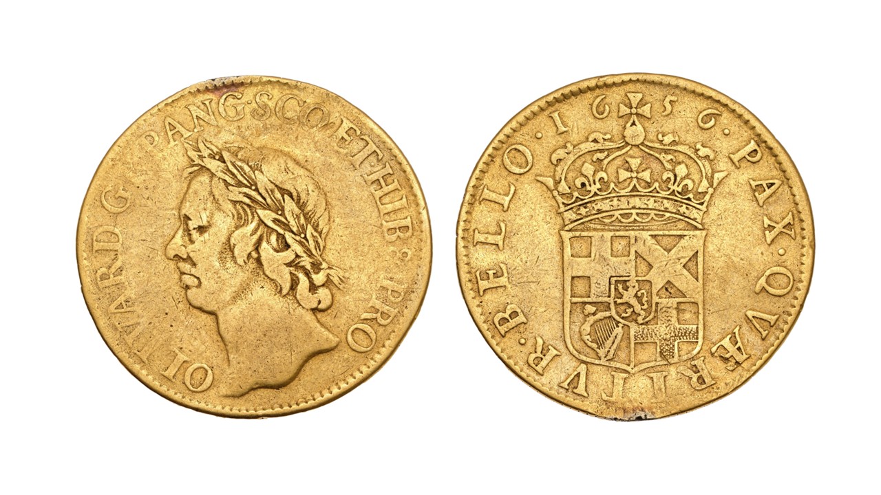 Among the highlights is a spectacular Ancient Greek Gold Fifty Litrai Coin from Syracuse, dating back to approximately 310-306 BC, which features a bust of Apollo on the reverse (estimate: £1,000-1,500 all figures exclude buyer’s premium). Coins from the Commonwealth of England are always popular, and among the rarest are those issued with the bust of Oliver Cromwell. We are pleased to offer an Oliver Cromwell Gold Broad dated 1656; while it is an ex-mount, it remains in very good condition and is difficult to obtain in any grade (estimate: £3,000-4,000).