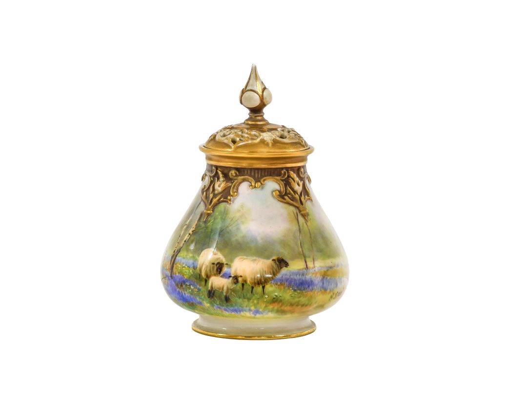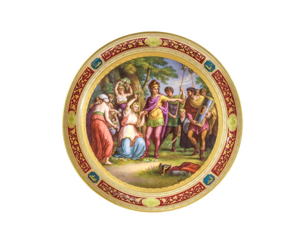 Leading the glass and ceramics in the sale is a Lalique Frosted Glass Bacchantes Vase, which was designed in 1927 (estimate: £600-800), and an interesting Kit-Kat Type Glass made circa 1740 and inscribed ‘Bumper to Ye King’ (estimate: £200-300). Further highlights include a circa 1770 Worcester Porcelain Chestnut Basket and Cover on Stand (estimate: £250-350), a Royal Worcester Porcelain Potpourri Vase and Cover by Harry Davis (estimate: £300-400), and a Vienna Style Porcelain Cabaret Tray (estimate: £200-300).