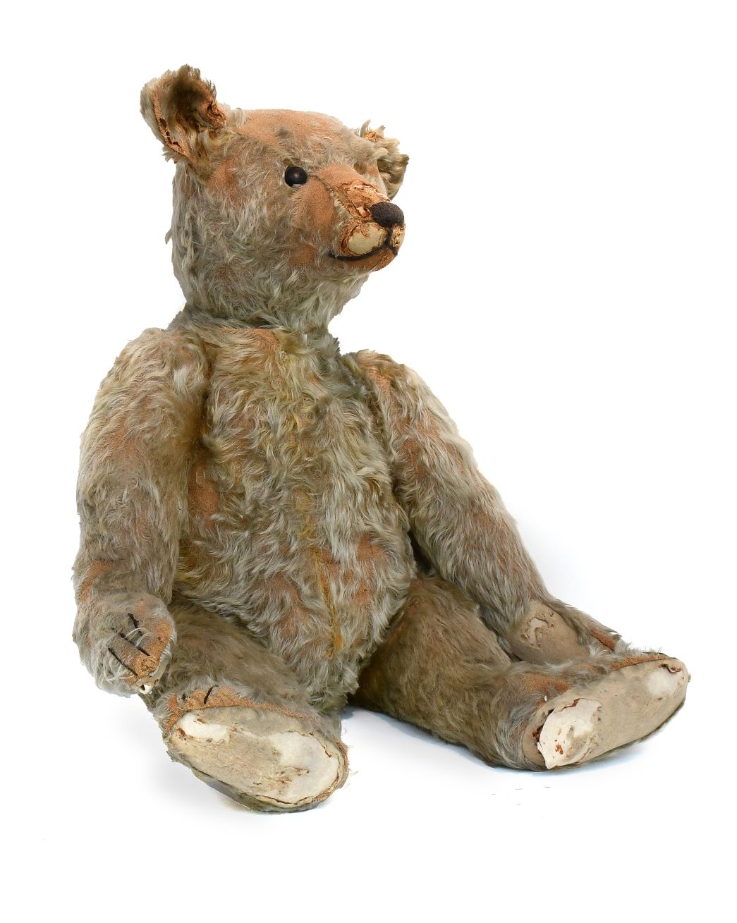 There is also a Private Collection of English and American 1940s Costume, a Private Collection of mainly English 1950s Costume, and a lifetime collection of 18th century and later buttons and buckles. Also on offer are charming Steiff toys, firstly an Early 20th Century Large Steiff Jointed Teddy Bear in yellow mohair (estimate: £1,500-1,800). The teddy belonged to the vendor’s grandpa, Joseph Edward Newsome (known as Edward). The Newsome’s were an affluent family who owned a wool mill in Dewsbury. Edward was born in 1908 at Aughton Hall – one of their family estates near Selby. After a couple of years, he moved with his parents and sister to Moor Lane House, which is now entombed within the Gomersal Park Hotel. While living there, Edward’s father died when he was only two. His mother moved the family to Harrogate so she could be nearer to her siblings who had moved here some years earlier. Then later, they relocated to Scarborough, where Edward lived for the rest of his life. When he died in 1996, the teddy was passed down to his daughter and when she died in 2021, to the vendor and her daughter.