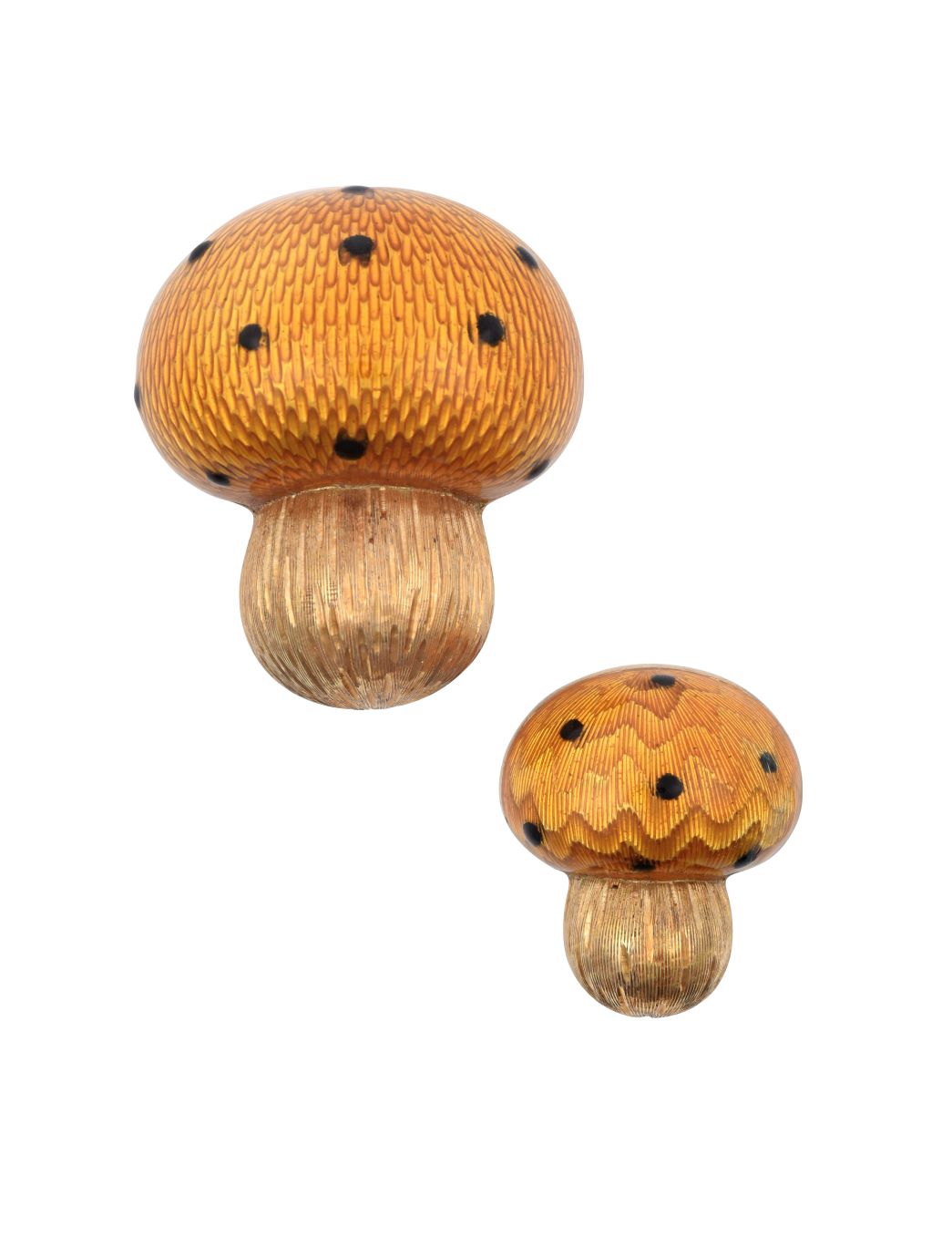 Modernist jewellery is also a strong feature in the sale, with a good selection on offer by the likes of Leo de Vroomen, Andrew Grima, Alan Gard, Thomas A Payne and Kutchinsky, including an 18 Carat Gold Sapphire and Diamond Bracelet by Kutchinsky (estimate: £1,500-2,000), and Two Enamel Pins realistically modelled as Mushrooms (estimate: £400-600).