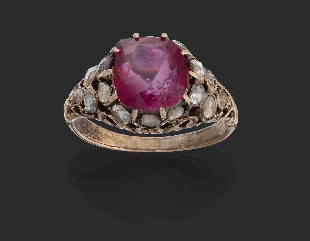 The highlight of the sale however, leading a fine offering of rings in the sale, is an 18 Carat Gold Diamond Solitaire Ring of significant size and weighing 7.5 carat approximately (estimate: £25,000-35,000). Further notable rings include a circa 1900 Ruby and Diamond Ring, which is set with a natural Burmese Ruby (estimate: £15,000-20,000), and an 18 Carat White Gold Sapphire and Diamond Cluster Ring (estimate: £12,000-18,000).