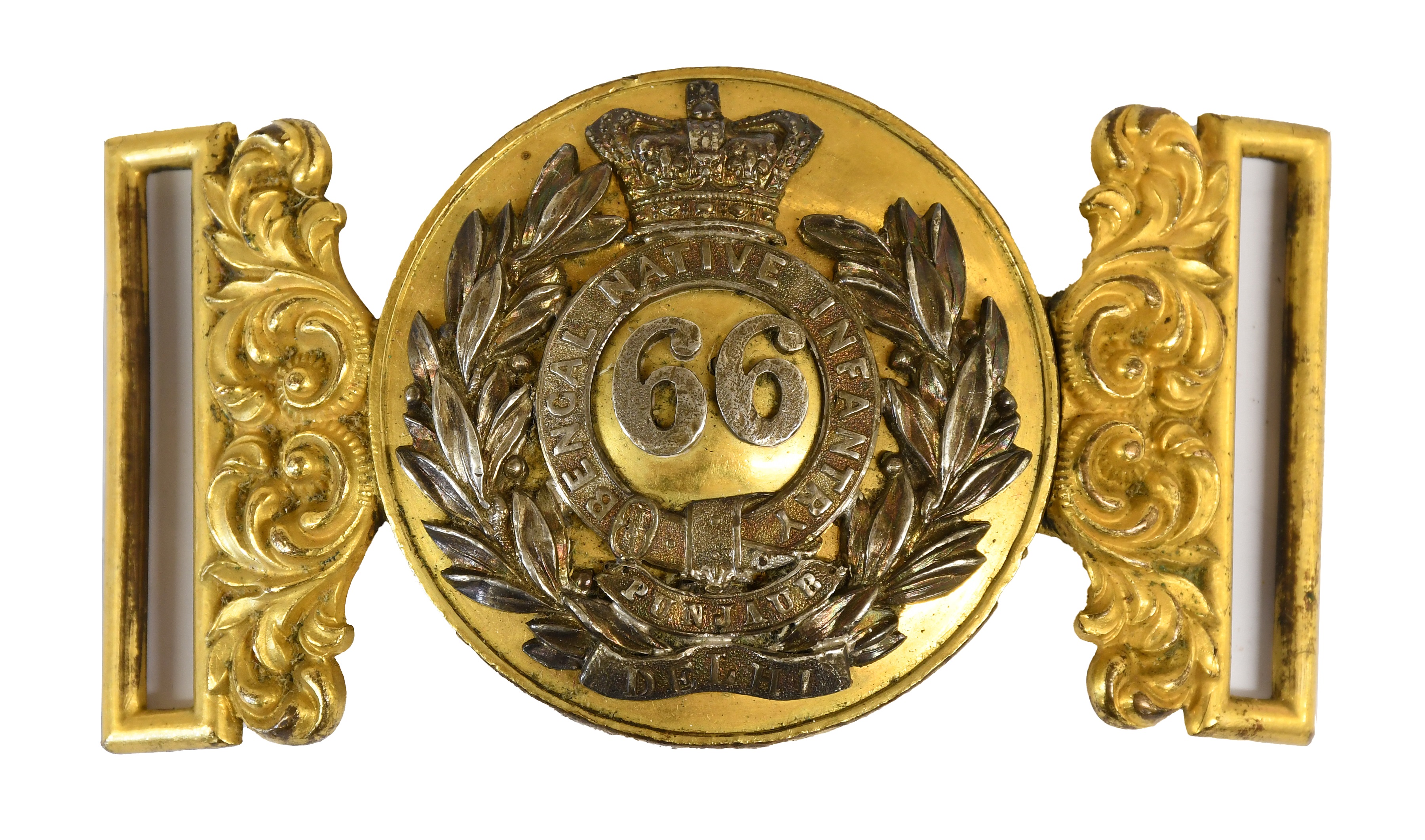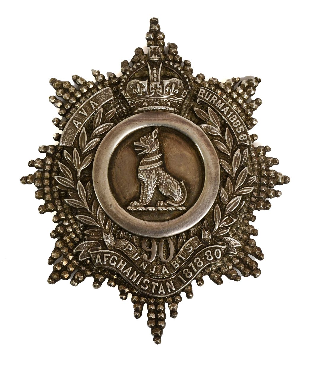 An interesting selection of good quality cap and collar badges, shoulder belt plates and helmet plates, many to Indian Army regiments, including a Victorian Officer’s Shoulder Belt Plate to the 19th (1st Yorkshire North Riding) Regiment of Foot (estimate: £500-600), a Victorian Shoulder Belt Plate to an Officer of the 76th Regiment of Foot (estimate: £800-1,200), and a Regency Shako Plate to an Officer of the 19th Foot (1st North York Regiment) (estimate: £600-800). From Indian Army regiments are a Victorian Officer's Belt Clasp to 66th Bengal Native Infantry (estimate: £120-180), a Great Indian Peninsula Railway Officer’s Pouch Belt Plate (estimate: £150-200), and a First World War Officer’s Silver Pouch Belt Plate to the 90th Punjabis (estimate: £150-250).