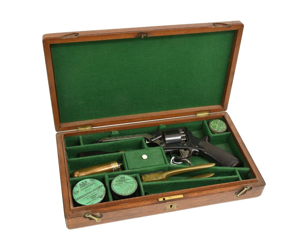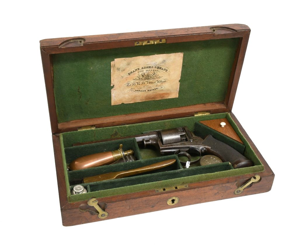 Highlights of the edged weapons in the sale include a Late 19th Century Caucasian Shasqua, a curved steel sword with elaborate decoration (estimate: £700-1,000), and Two First World War British 1868 Pattern Cavalry Lances (estimate: £250-300). Good pistols and revolvers include a Pair of Late 18th Century Flintlock Duelling Pistols by Philip Bond (estimate: £1,200-1,500), a 19th Century Five-Shot Self-Cocking Percussion Revolver by Deane, Adams & Dean (estimate: £900-1,100), a 19th Century Five-Shot Double Action Percussion Revolver by R.H. Bate Senr (estimate: £600-800), and a 19th Century Second Model Tranter’s Patent Self-Cocking Five-Shot Percussion Revolver (estimate: £800-1,200).