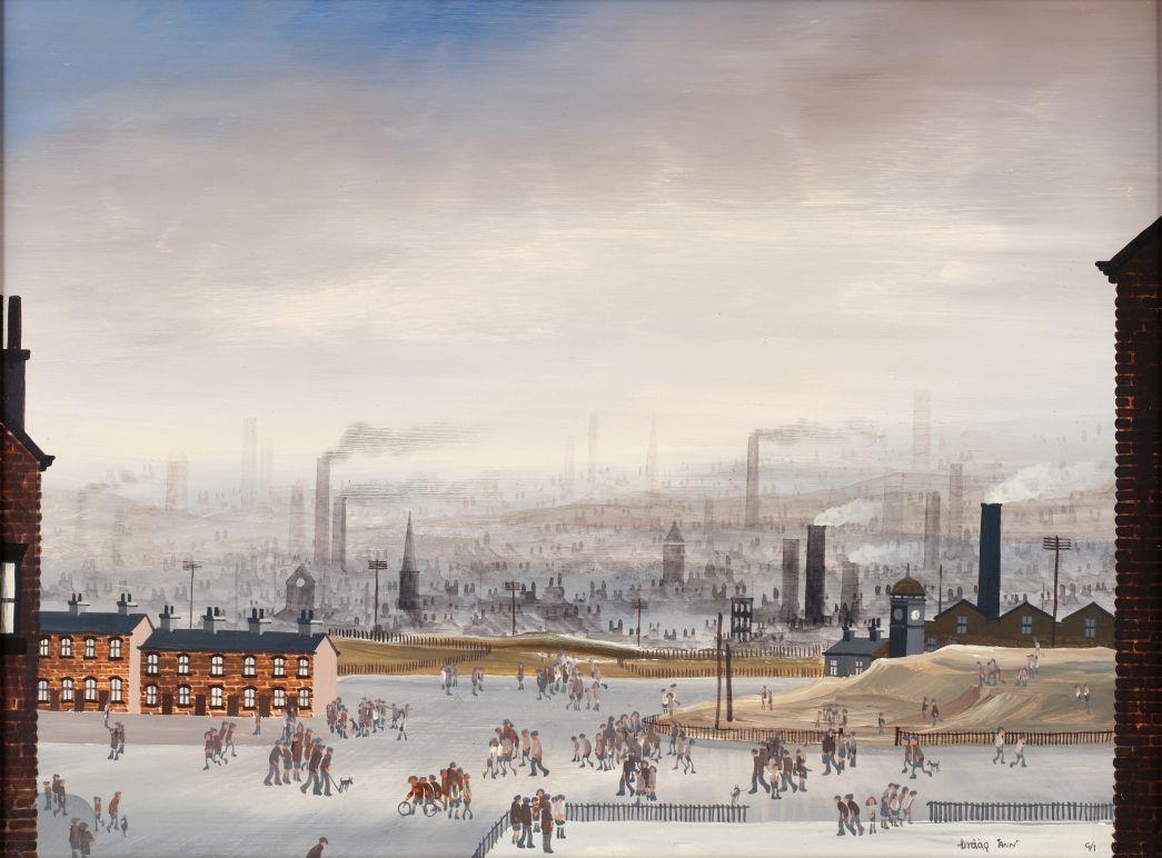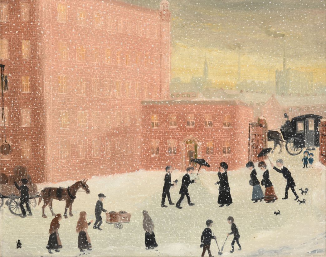 Leading a strong outing for Northern Art are three works by Helen Bradley. At the age of 65, having dedicated her adult life to raising a family, Helen Layfield Bradley (1900-1979) reinvented herself as an internationally acclaimed artist. Using a soft yet colourful palette and simple two-dimensional figures, she illustrated short narrative accounts based on early childhood memories of growing up in the Edwardian era to show her grandchildren just how different the world was when she was a child. On offer in the sale are “Snowing in Lanchester”, “Lees Brook” and “House for Sale”, which carry estimates of £15,000-20,000 each. Further interesting works by Northern artists include a selection of paintings by Brian ‘Braaq’ Shields (1951-1997) including Figures and Dogs Before a Mill Town (estimate: £3,000-5,000), Winter Wash Day by Peter Brook (1927-2009) (estimate: £3,000-5,000), “Catherine” by Norman Cornish (1919-2014) (estimate: £2,000-3,000), “Galloping Horse” by Sally Arnup (1930-2015) (estimate: £4,000-6,000) and works by Wigan artist Theodore Major.