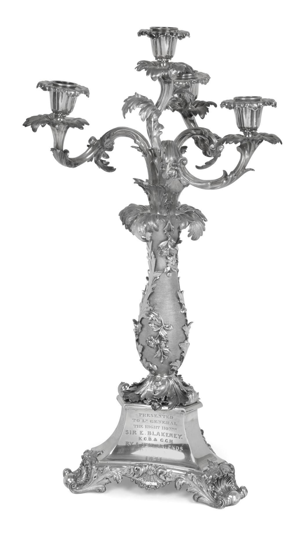 An impressive Victorian Silver Four-Light Candelabrum presented to a high-ranking British Army officer is amongst a strong offering of 160 lots of silver and objects of vertu in Tennants Auctioneers’ Fine Jewellery, Watches and Silver Sale on 16th July. The Candelabrum was made by John Mortimer and John Samuel Hunt of London in 1840 and presented to Lt. General the Right Honourable Sir Edward Blakeney K.C.B., G.C.H. (1778-1868) by ‘A Few Friends in Dublin’. Blakeney was born in Newcastle, the son of Major William Blakeney, himself and Army officer who fought at the Battle of Rheinberg and the Battle of Bunker Hill during the American War of Independence. After entering the Army to serve with the 8th Light Dragoons, Sir Edward rose rapidly through the ranks, seeing action in numerous battles from Dutch Guiana to Copenhagen, and served with Sir Arthur Wellesley, later Duke of Wellington, during the Peninsular War in 1810. In 1862 he was promoted to Field Marshall, having been sent 1836 to Ireland as Commander-in-Chief before becoming Lord Justice of Ireland. Back in England he would go on to become Governor of the Royal Hospital Chelsea. The Candelabrum is offered with an estimate of £5,000-8,000 plus buyer’s premium.