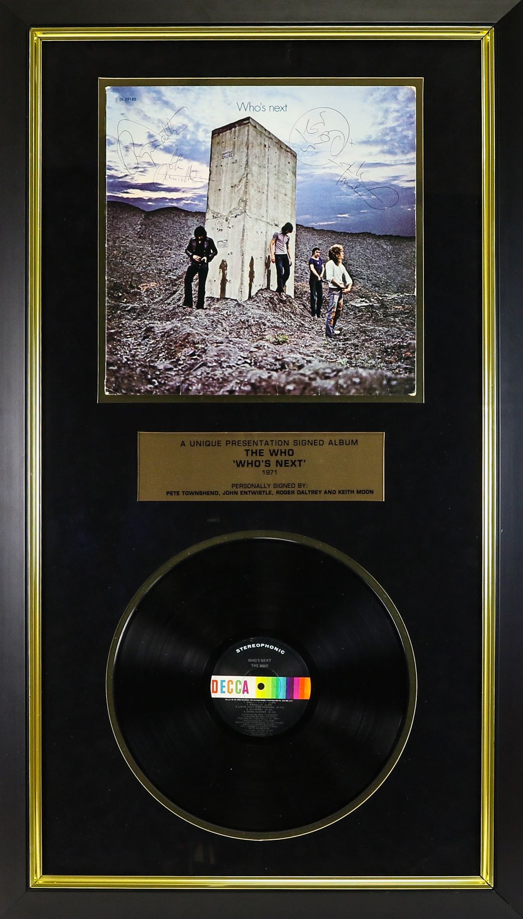 Further interesting letters include two signed letters written by Rolling Stones bass player Bill Wyman to Kathleen, a fan. The letters were written in reply to Kathleen, answering questions such as what kind of girls he liked, who his favourite American R&B singer was and what colour were his eyes. The letters are offered with an estimate of £400-600. Also of musical interest are a selection of presentation LP’s, which include The Who ‘Who’s Next’, signed by Pete Townsend, John Entwistle, Roger Daltry and Keith Moon (estimate: £80-120).