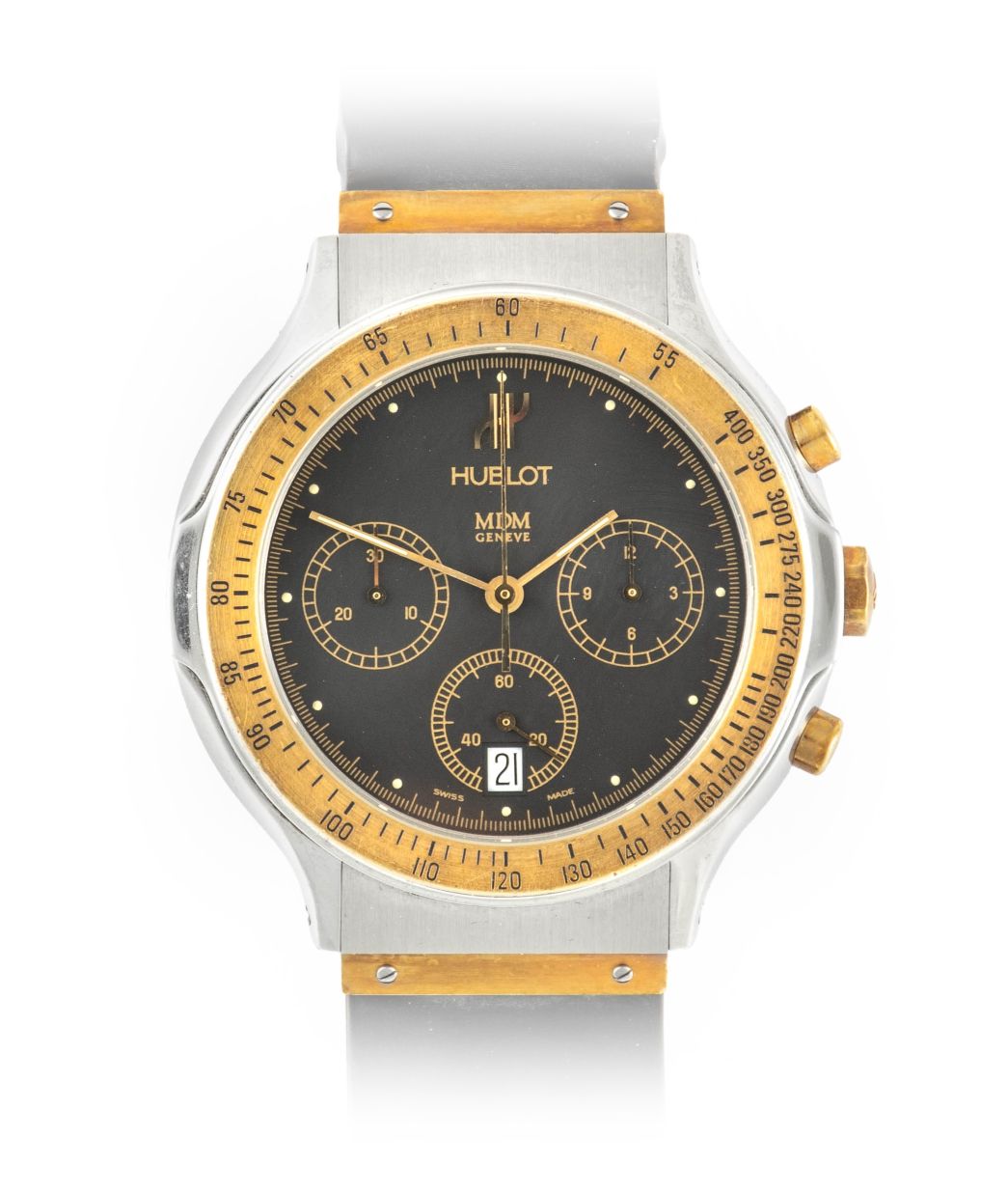 The ‘Dirty Dozen’ is a name given to a group of twelve models of watches commissioned by the Ministry of Defence during the Second World War, custom built by twelve Swiss watchmakers. One of the ‘Dirty Dozen’ was made by Cyma, and an example of this circa 1944 Military Wristwatch will be offered in the sale with an estimate of £500-700. Amongst the other vintage watches in the sale is a 1959 Omega 9 Carat Gold ‘Honeycomb’ Finished Wristwatch (estimate: £200-300), and a Tissot model T12 Stainless Steel Chronograph from the 1970s (estimate: £300-400). Modern luxury watches in the sale include an interesting Anonimo Firenze Dual Time GMT in stainless steel (estimate: £400-600), and a 1990s Hublot MDM in Steel and Gold (estimate: £400-600).