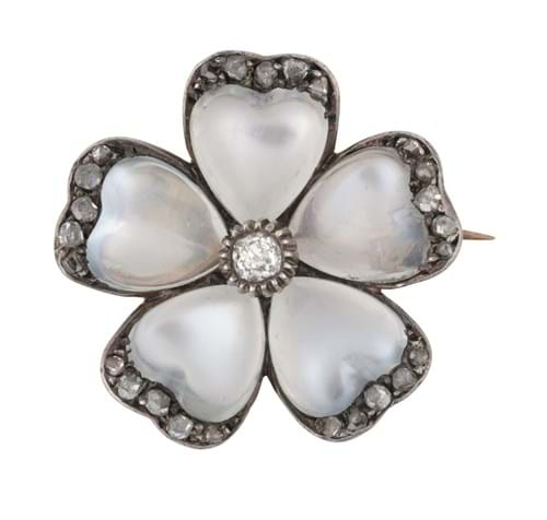 A Mid-19th Century Moonstone and Diamond Brooch (estimate: £300-500 plus buyer’s premium)