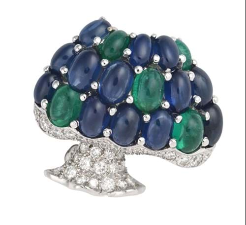 An Emerald, Sapphire and Diamond Novelty Brooch (estimate: £1,000-1,500 plus buyer’s premium)