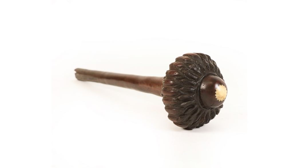 Also hailing from Oceania is a 19th century Fijian Ula or throwing club (estimate: £700-800). The club has a large compressed globular head deeply carved with a band of raised diamond motifs and the top is inset with a star panel made of marine ivory. Such weapons were usually made from a type of ironwood, were either thrown as a missile or used in the hand as a club and were highly effective weapons.