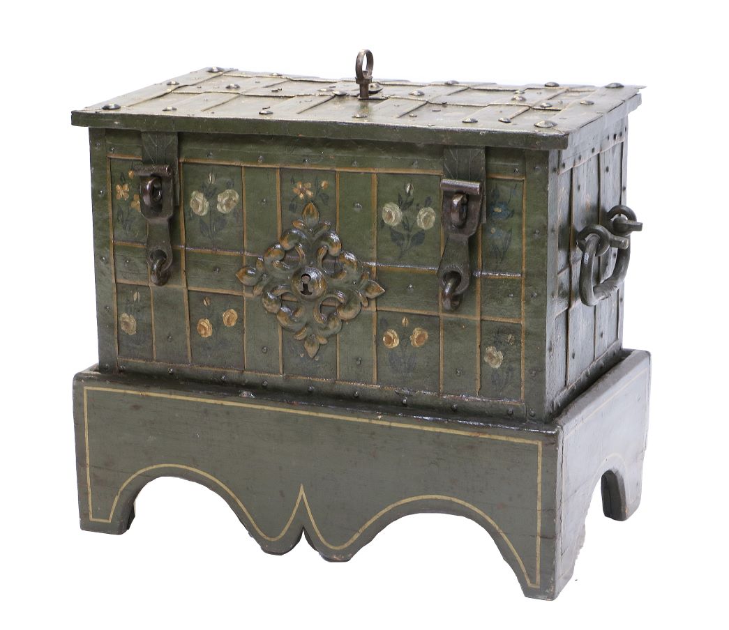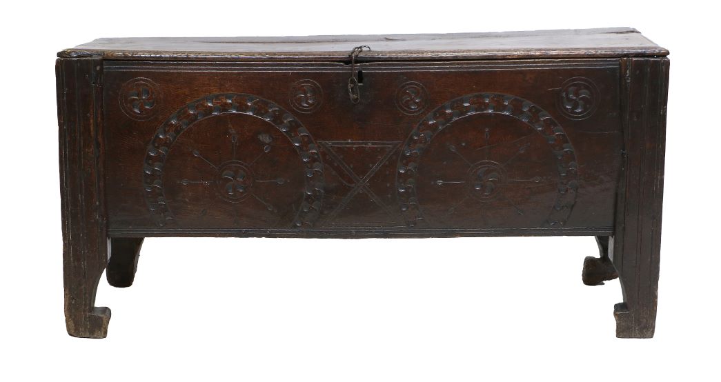 In a strong furniture section, the top lot of the day was a Queen Ann ‘Mulberry Wood’ Walnut, Crossbanded and Featherbanded Chest on Stand from the early 18th century, which sold for £8,500. From the same era was a Spanish Walnut Side Table with spiral-turned supports, which sold for £2,500. Amongst a good offering of earlier furniture that sold strongly was a late 16th century Oak Chest, which sold for £2,000, and a late 17th century Joined Oak and Carved Food Cupboard, which sold for £4,200. Also on offer in the sale were two 17th century Painted Iron Armada Chests, both probably Dutch in origin, which sold for £1,900 and £2,000 respectively. Selling well, too, were a Pair of George III-Style Two-Seater Sofas (sold for £5,000), an Early Victorian Mahogany Extending Dining Table, which by repute was made by Gillows for Dutton Manor, Lancashire (sold for £5,000), and a late 19th century Bridgewater-type upholstered armchair attributed to Howard & Sons (sold for £2,600).