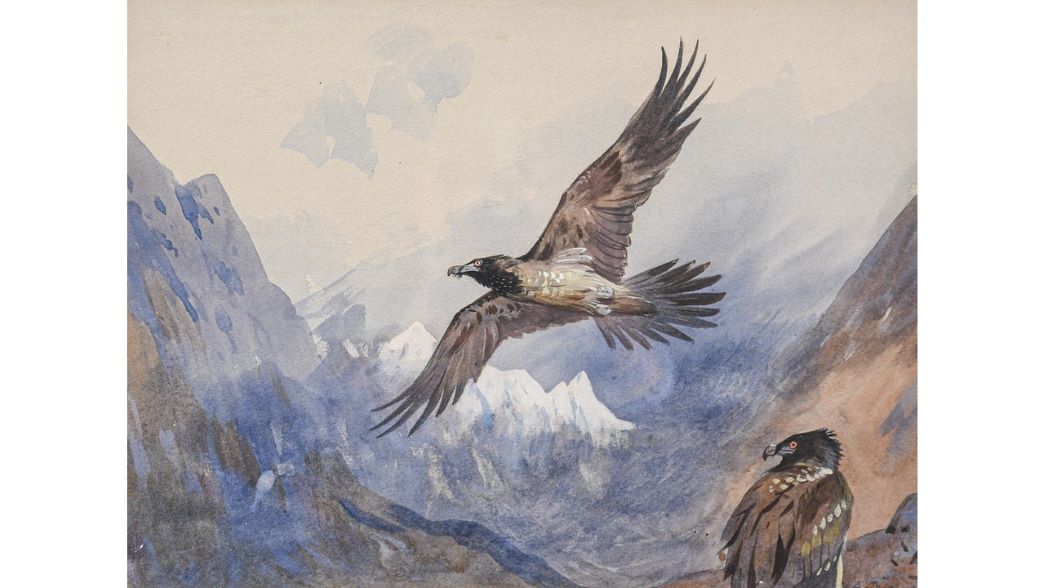 The collection was sold in 110 lots and realised a total hammer price of £68,520 – almost doubling the top estimate. Highlights amongst the books in the collection included W. Vincent Legge ‘A History of the Birds of Ceylon, London, 1880 (sold for £3,500), which is an important monograph on the birds of Sri Lanka with fine hand-coloured lithographic plates by J. G. Keulemans. Hosking’s personal complete set of the New Naturalist Monographs, London, Collins, 1948-71, of which he was the photographic editor sold for £3,000, aided by the personal inscriptions to Hosking in the volumes from the authors. From Hosking’s picture collection, Archibald Thorburn’s watercolour "Lammergeier, Spain” sold for £2,500, and from the camera collection, a Hasselblad Xpan Standard Kit with lenses sold for £2,600.