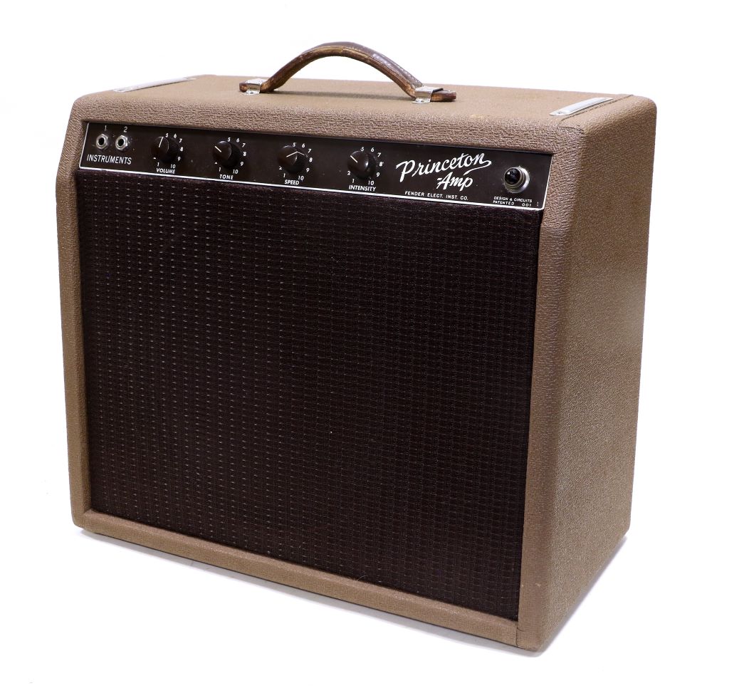 The Stratocasters made by Fender before the sale to CBS are regarded as the finest Fenders ever made. Only produced during the narrow window from 1953-65, Pre-CBS Fender Stratocasters are rare and much sought-after by collectors of vintage guitars. The present example is finished in its original cream body and white scratchplate. The Fender is part of a Private Collection in the sale, which includes modern high-quality guitars, and vintage Fender amps, such as a Fender Princeton Amp, offered with an estimate of £800-1,200.