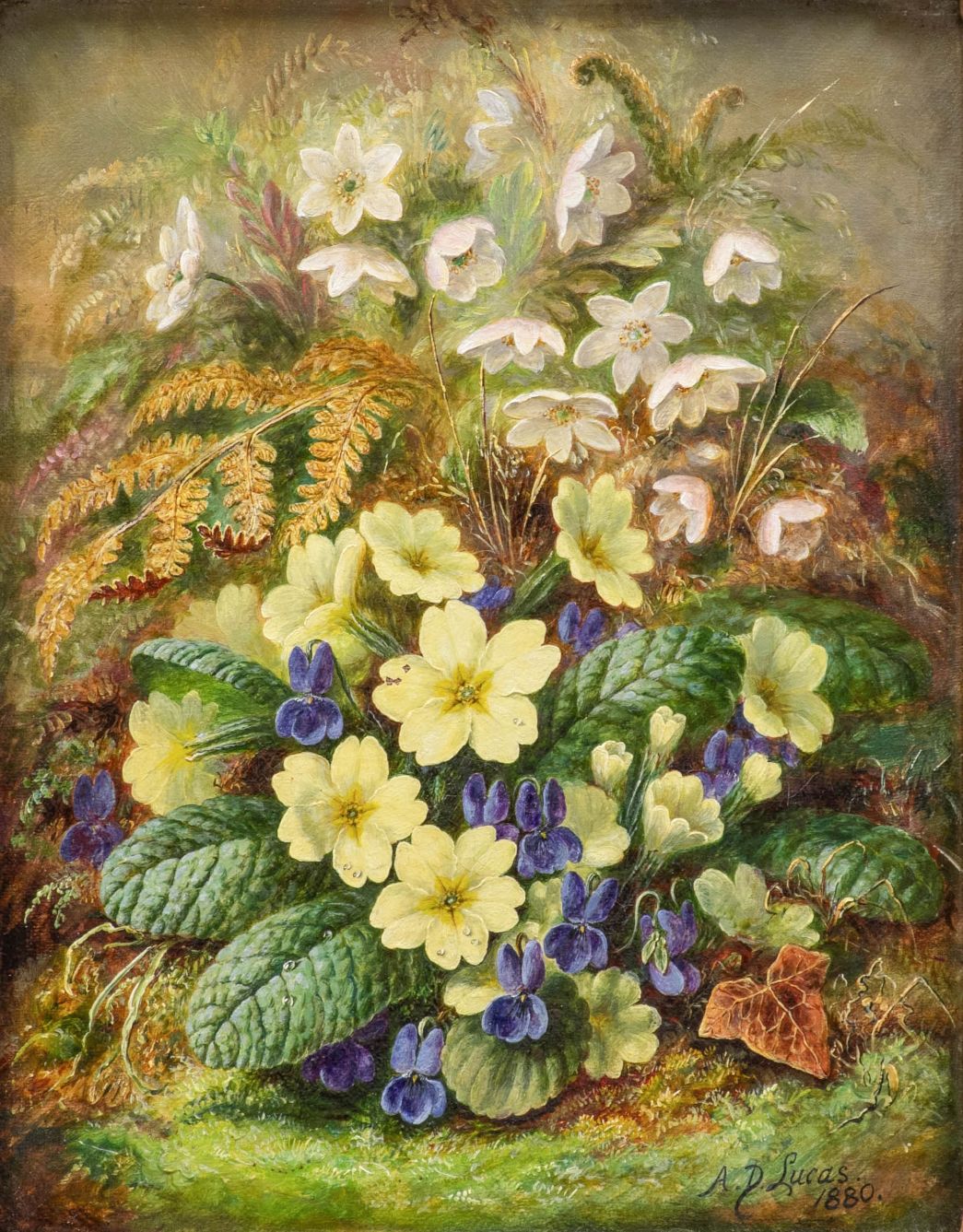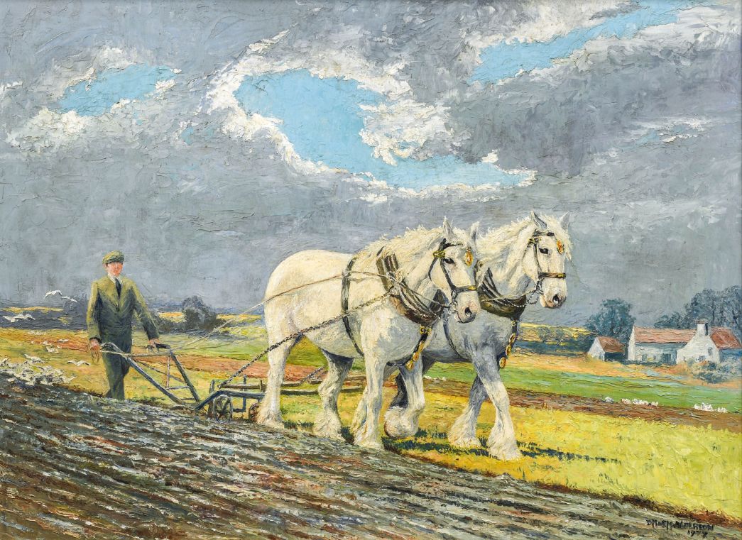 Paintings of animal subject matter performed well in the sale, with a characterful 19th century painting of Three Terriers Standing in a Landscape by J Clarke selling well at £1,500, and a copy of Air Edwin Landseer’s “A Distinguished Member of the Humane Society” sold for £420. Notable, too, was The Day’s Catch on a Grassy Riverbank by a Follower of Henry Leonides Rolfe (sold for £600), a Ploughing Scene with Two Grey Shires by DM and EM Alderson (sold for £800), and a Still Life of Primroses and Violets by Albert Durer Lucas (sold for £1,000).