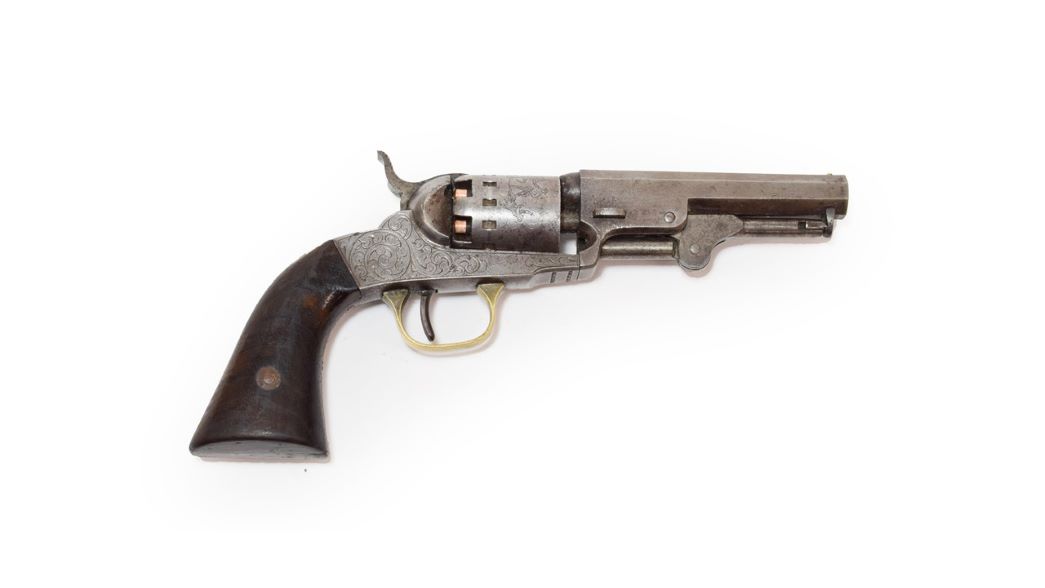 Elsewhere in the sale an Indian Steel Bow comprising two sections screwed together sold for £1,700, and a group of five African tribal weapons including a Masai Lion Spear and a Polearm with a bill hook type blade sold for £1,600. A London Pistol Company Six Shot Single Action Percussion Revolver, which was patented in 1859, sold for £700, and a Late 18th Century Irish Brass Crossbelt Plate sold for £1,500. The plate was engraved with a Maid of Erin harp and ‘BALLINTEMPLE INFANTRY 1796’, one of the numerous militia or Volunteer groups that sprung up in Ireland in the late 18th century to guard against invasion and preserve law when British forces were withdrawn to fight in the American Colonies.