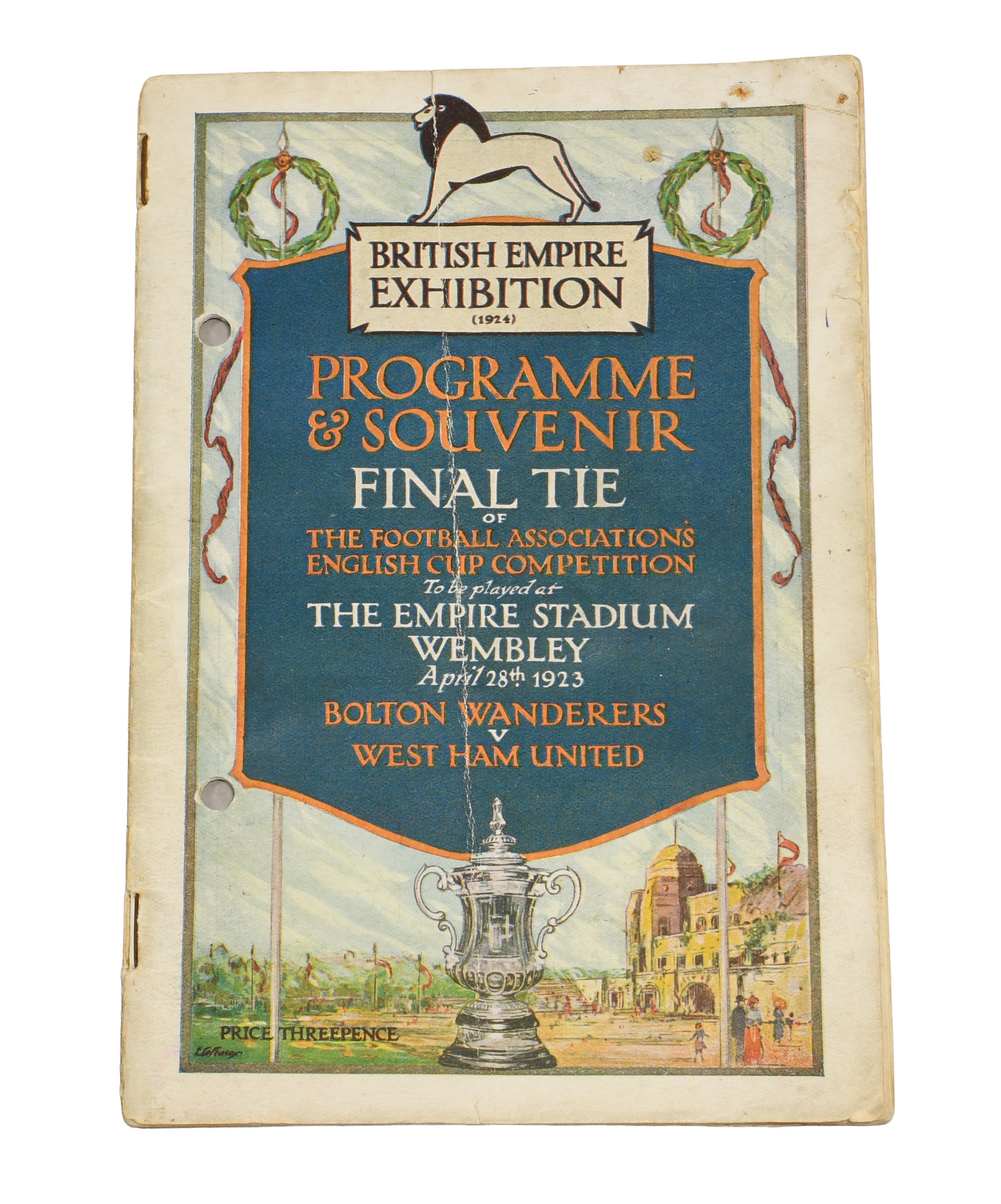 Tennants’ Sporting Memorabilia Specialist Kegan Harrison says of the collection: “This is a remarkable collection, with some really rare programmes including one from the first match ever played at Wembley Stadium in 1923 when West Ham went up against Bolton Wanderers. Poignantly, there are also several programmes from the Second World War era, when numerous last minute team changes had to have been made, which are written in by hand”.