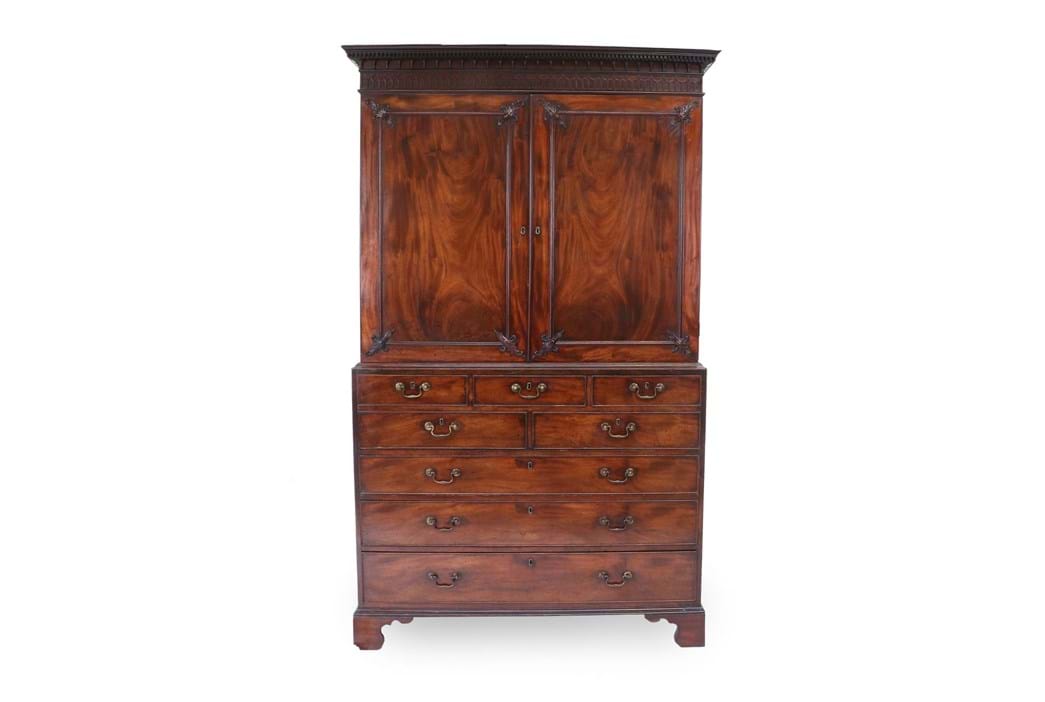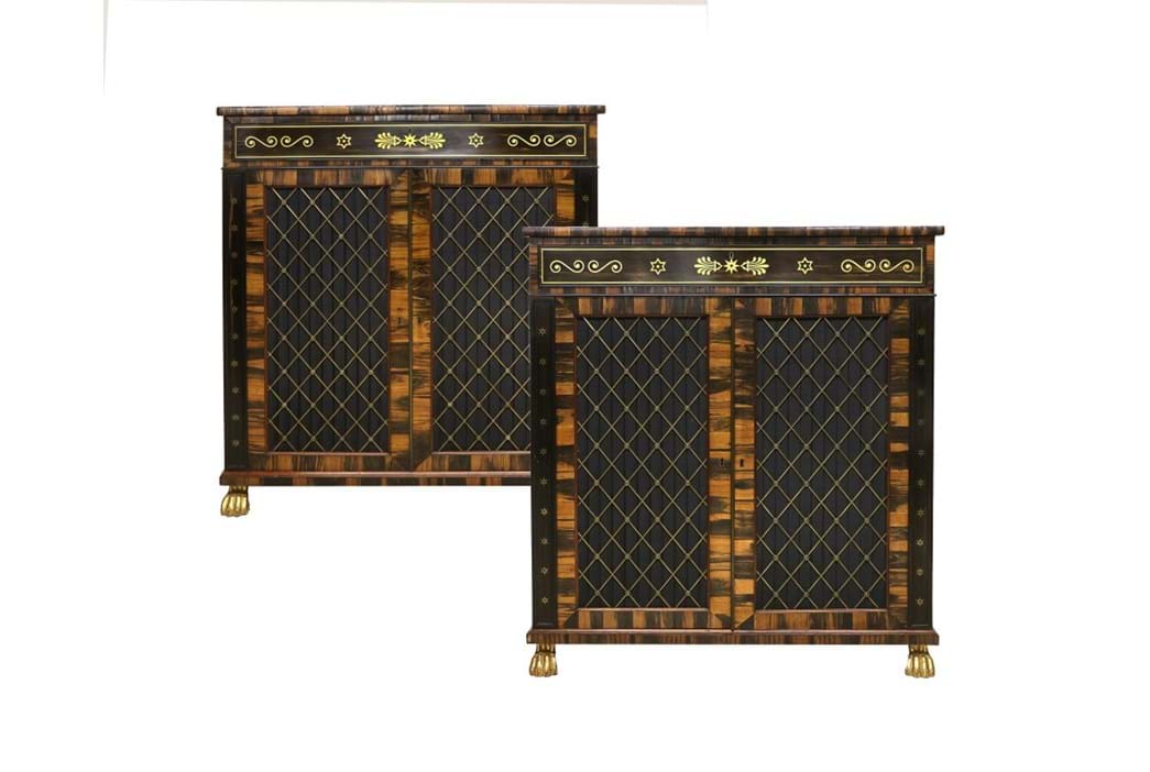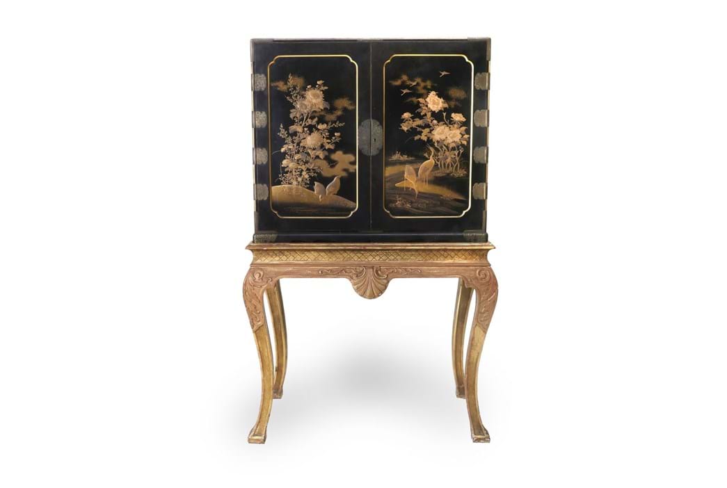 A fine near pair of Regency Calamander and Brass-Strung Side Cabinets, dating from the early 19th century, sold for £9,000 (all figures exclude buyer’s premium), in Tennants Auctioneers’ Autumn Fine Sale on 16th November. The cabinets were made after a design by George Smith. Good examples of 18th century furniture sold well, too, with a George II Mahogany Gainsborough-Type Library Armchair from the middle of the century selling for £7,000, a George III Oak Dresser Base from the third quarter of the century selling for £3,200, and George III Mahogany Secretaire Linen Press attributed to Gillows of the same date selling for £2,800. Also of note was a William and Mary Floral Marquetry Side Table from the late 17th century (sold for £4,500, and a Japanese Black Lacquer and Gilt-Decorated Cabinet on Stand from the 20th century (sold for £4,000).
