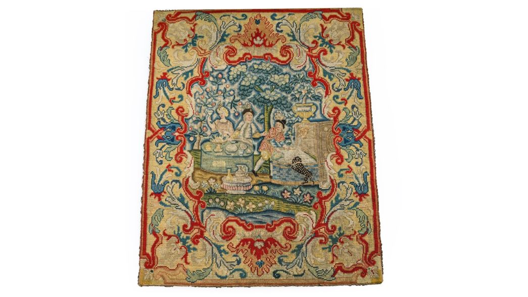 A Pair of 18th or 19th Century Crewelwork Curtains were one of the highlights of Tennants Auctioneers’ Costume, Accessories and Textiles Sale on 20th November. Beautifully decorated with a tree of life motif and surrounded by flowers and leaves the pair beat the £400-600 estimate to sell for £2,800 (plus buyer’s premium). A good result was also seen for a Mid-18th Century Wool and Petit Point Needlework depicting figures seated at a table, which sold for £1,000.