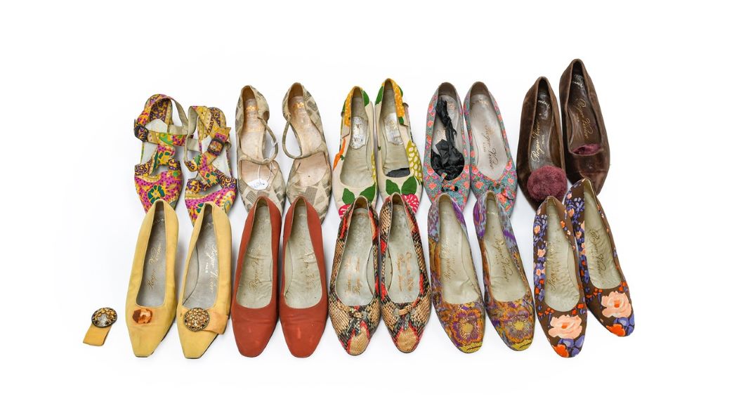 With a royal connection were shoes and costume that once belonged to Wallis Simpson and were part of the landmark sale of the Duke and Duchess of Windsor’s personal collections at Sotheby’s in 1997. The top lot was a collection of 10 pairs of decorative shoes from the 1960s and 1970s that sold for £1,200.