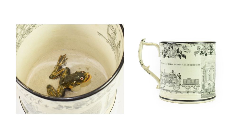 The sale began with Glass and Ceramics, which saw confidant bidding with good results seen for 18th and 19th century glass. Amongst the top lots in the section was a rare circa 1833-36 Herculaneum Pottery Robert Stephenson Commemorative Frog Mug that sold for £2,200 (plus buyer’s premium), well over the presale estimate of £500-700. The mug, which had a realistically modelled frog sitting in the base, is decorated with a scene of the Exchange Buildings and Nelson’s Monument in Liverpool flanked by locomotives. The locomotives are Stephenson’s Rocket and Northumbrian, and it is also adorned by an image of Braithwaite and Ericsson’s Novelty locomotive. Stephenson’s Rocket and Braithwaite and Ericsson’s Novelty rang at the Rainhill Steam Trials on 6th October 1829. A Meissen Style Porcelain Elephant Group, after the 18th century model by J J Kandler and P Reiniche sold well, too, at £2,200.