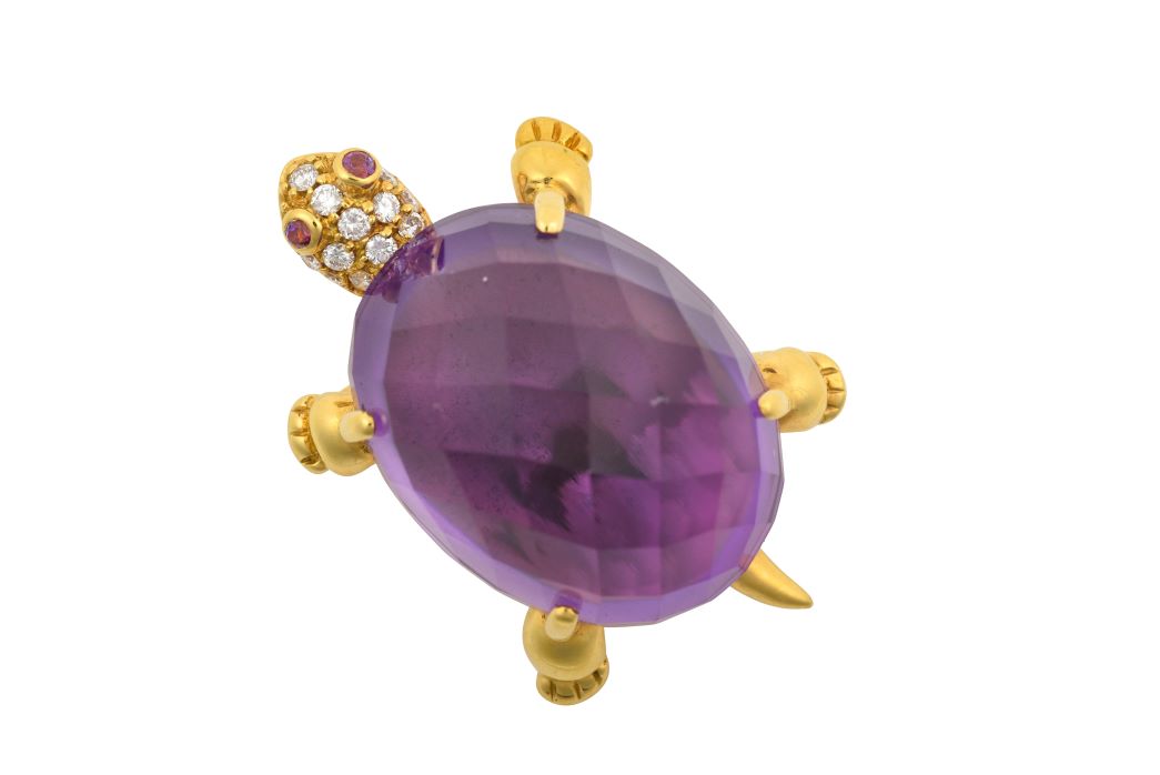 Novelty animal-themed brooches were in high demand in the Jewellery, Watches and Silver Sale at Tennants Auctioneers on 11th January, when a whole menagerie of decorative gems went under the hammer. Beautifully made and with a playful touch, animal brooches have long been popular at auction, and selling well above estimate in the sale were an Elephant Brooch by Henry Dunay (sold for £850 all figures exclude buyer’s premium), an 18 Carat Gold Green Garnet and Ruby Frog Brooch by E Wolfe & Co. (sold for £850), and an Amethyst and Diamond Brooch modelled as a Tortoise (sold for £950. Also selling well at £950 was an Enamel Egg and Chick Pendant by Victor Mayer for Fabergé.