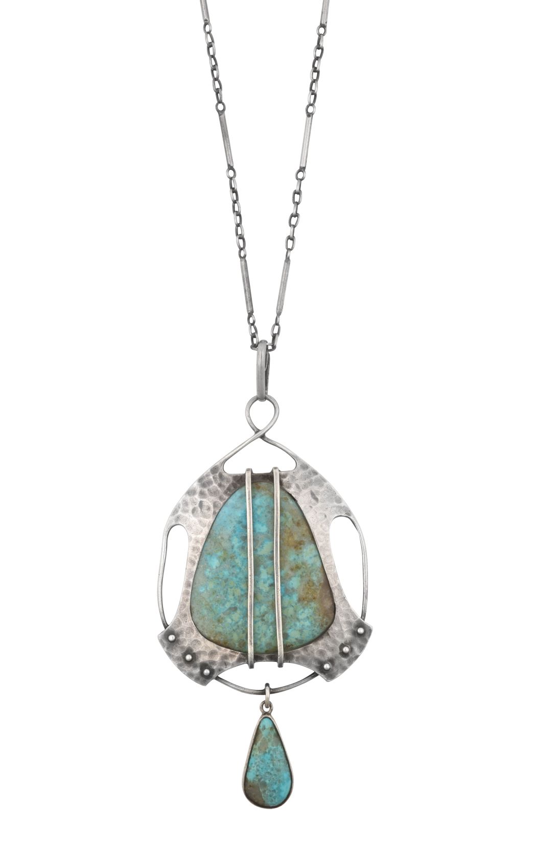 Contemporary designer jewellery sold well, too, with a Pair of 18 Carat Gold Diamond and Cultured Pearl Signature Earrings by Tiffany & Co. selling for £1,200, and a Multi-Gem Set Chandelier Necklace by Annoushka selling for £1,100. Good modern rings included a Sapphire and Diamond Cluster Ring (sold for £1,100). Amongst the period jewellery in the sale was an Early 20th Century Black Opal and Diamond Three Stone Ring (sold for £1,700), an Arts and Crafts Turquoise Pendant on Chain by Murrle Bennett & Co. (sold for £950), a Late 19th Century Amethyst Necklace (sold for £1,500), a Georgian Garnet Necklace (sold for £1,800), and a Pair of Victorian Drop Earrings (sold for £800).