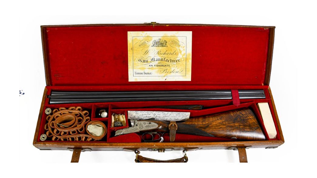 Interesting firearms in the sale included a 12 Bore Side by Side Double Barrel Sidelock Ejector Shotgun by W Richards of Preston. The gun was a 21st birthday present to Edward S Healey (b.1886) in 1907, and little used by him as he joined the armed forces when the First World War broke out. Between 1918 and his death in 1943 he hardly used the gun. It has been seldom used by his descendants and kept in careful storage. The gun sold for £2,200. Also of note was a Deactivated US Thompson M.1928 Submachine Gun (sold for £1,900), and a Deactivated German Walther P38 Semi-Automatic Pistol (sold for £750).