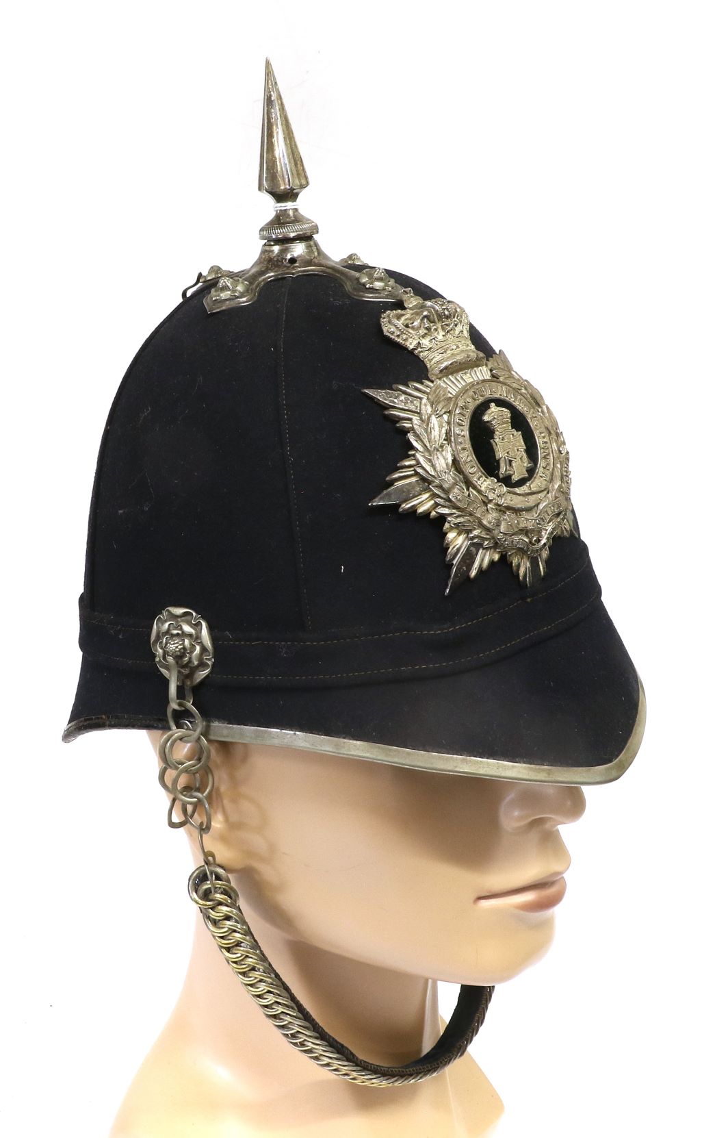 An interesting and varied offering of Militaria and Ethnographica was sold in a specialist sale at Tennants Auctioneers on 11th December, which included several private collections. From a good private collection of Victorian and Edwardian military headgear came a Victorian Officer’s Black Cloth Forage Cap to the 106th Bombay Light Infantry (sold for £850 – all figures exclude buyer’s premium). The cap was complete with the black horsehair plume and housed in a japanned tin with brass label engraved to ‘Col. Leith, 106th Regt.’. A Victorian OR’s Home Service Helmet to the 2nd Volunteer Battalion of the Yorkshire Regiment sold for £700, and a Victorian Officer’s Black Cloth Forage Cap to the 33rd (Duke of Wellington’s) Regiment of Foot sold for £600. From the same vendor came a notable Tyneside Scottish lot, comprising two horsehair and leather sporrans, a black leather waistbelt and a glengarry that smashed the £150-200 estimate to sell for £3,000.