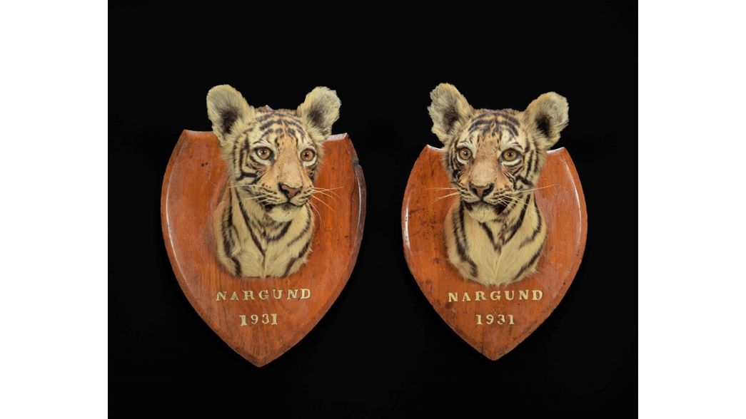 A very rare pair of Early 20th Century Indian Tiger Cub Head Mounts by Van Ingen and Van Ingen or Mysore, India sold for £12,000 in the Natural History and Taxidermy Sale on 23rd July. Dated 1931, the pair were taken in Nargund, South West India.