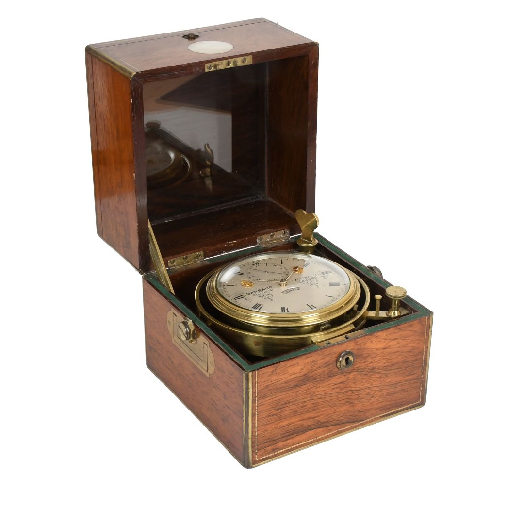 One of the top-performing disciplines in the sale was clocks and barometers, which saw outstanding prices amongst which was a rare French Ormolu and Patinated Bronze Striking Mantel Clock by Maison Jolly of Paris, which depicted a Native American hunter and sold for £7,500. A good circa 1780 Mahogany Eight Day Chiming Longcase Clock by Edward Pistor of London sold well at £4,000, and a circa 1870 French Brass Engraved Striking and Repeating Carriage Clock by Joseph Soldano sold for £1,900. Selling above estimate, too, was a good circa 1850 Rosewood Eight Day Marine Chronometer, made by Barraud of London who supplied the Royal Navy; the case was inscribed ‘H. Thurburn Esq.’ and it sold for £6,000.
