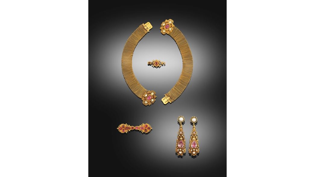 Period jewellery proved equally desirable in the saleroom, with confident bidding leading to good results for the likes of an Edwardian Diamond Cluster Bracelet (sold for £14,000), an Art Deco Diamond Clip Brooch (sold for £8,500), and a circa 1870 Archaeological Revival Classical Head Pendant (sold for £4,800). Also of note were a Georgian Pink Topaz and Diamond Cluster Ring (sold for £2,500), a Regency Cannetille Pink Topaz Demi Parure made circa 1830 sold for £4,200, and an Edwardian Opal, Diamond and Enamel Brooch with an impressive lively marquise cabochon opal sold for £3,800.