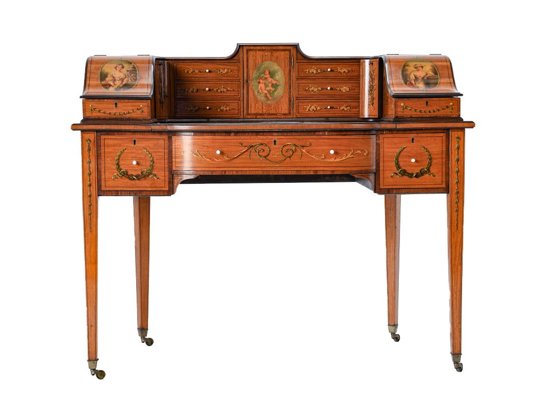 Decorative and practical antique furniture both saw good results, with top prices achieved for a Harlequin Set of Eight Charles II Joined Oak Back Stools from the late 17th century (sold for £4,300 plus buyer’s premium), a Satinwood and Polychrome Painted Carlton House Style Desk (sold for £4,500), and a Panelled Oak Bedstead (sold for £4,000). A trend is emerging to towards stronger prices for practical pieces of storage furniture, such as a George III Mahogany Linen Press that sold for £1,600. Clocks, particularly longcase clocks, sold well throughout; highlights included an Oak Thirty Hour Longcase Clock made circa 1770 by Thomas Lister of Halifax (sold for £1,500), and an Early 18th Century Thirty Hour Striking Wall Clock made circa 1710 by John Sanderson of Wigton (sold for £1,500).