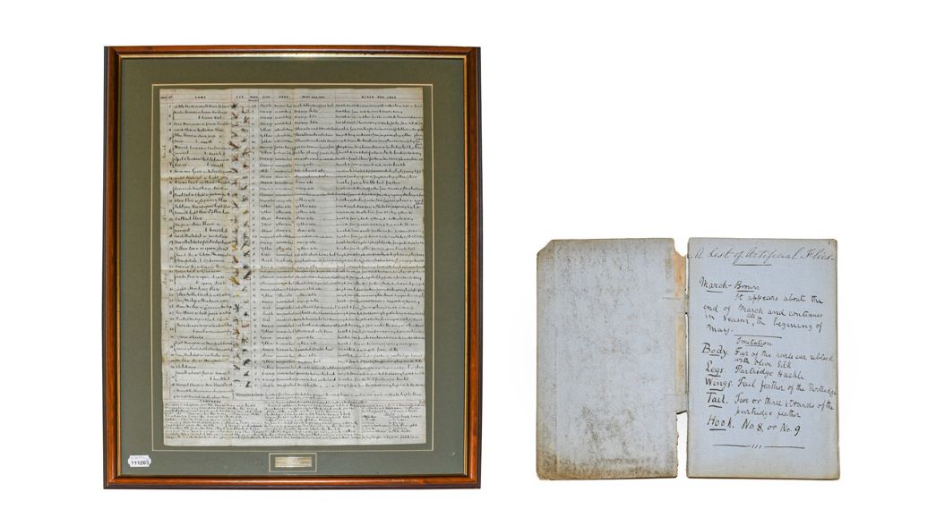Amongst a good offering of fishing equipment in the sale was a Framed List of Artificial Yorkshire Trout Flies, with descriptions of dressings, tying instructions and examples of 36 flies. The frame was mounted with a dedication to J. Todd (1861-1945), Masham, and the lot sold for £950.