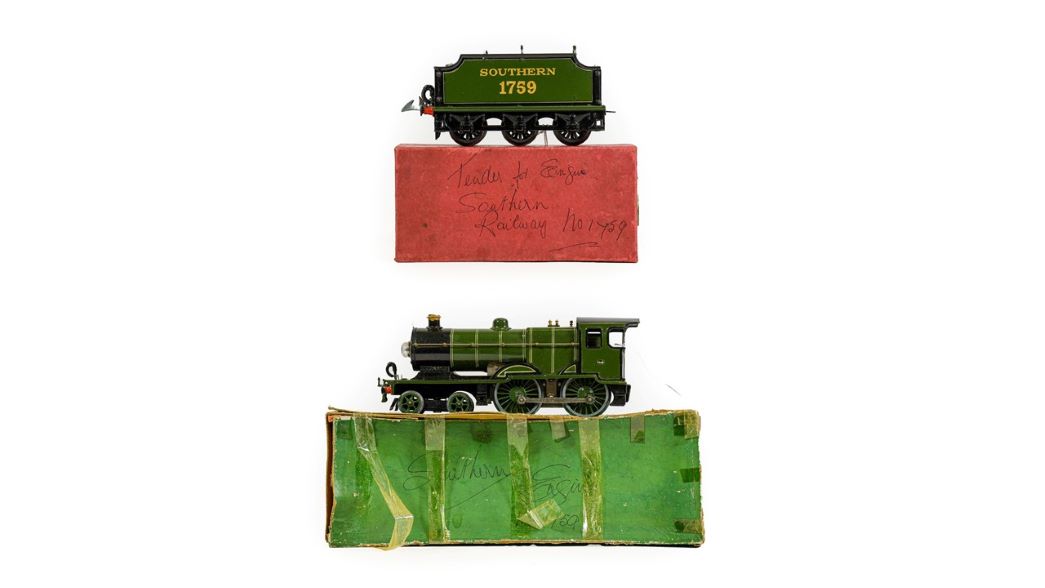 A Bing for Bassett-Lowke Live Steam Gauge II Locomotive Midland Railway and Tender was the top lot of Tennants Auctioneers’ Toys, Models, Collectables and Sporting Sale on 30th July, selling for £3,000 (plus buyer’s premium). The locomotive was sold with its original receipt, a rare occurrence that showed that it had been purchased on 31st July 1923 for £15/15/0, two Bassett-Lowke catalogues and a selection of assorted accessories. A further locomotive that sold well above estimate was a Hornby Series O Gauge E220 Special Locomotive for Southern Rail, which sold along with its tender in boxes for £1,600.