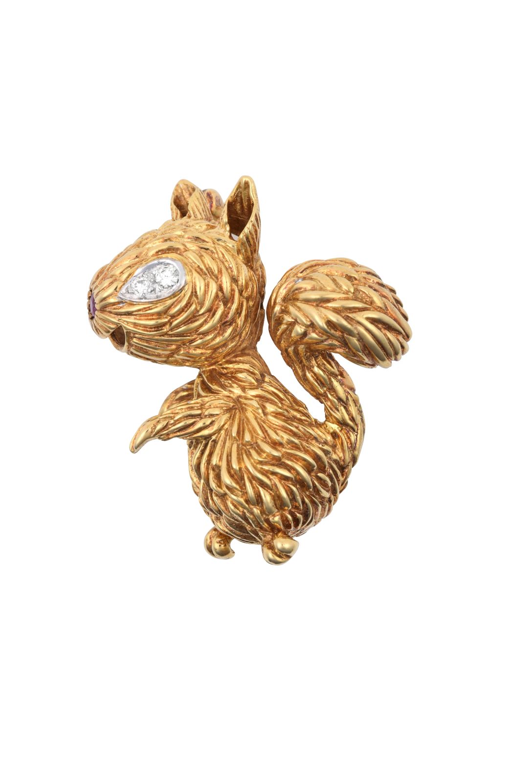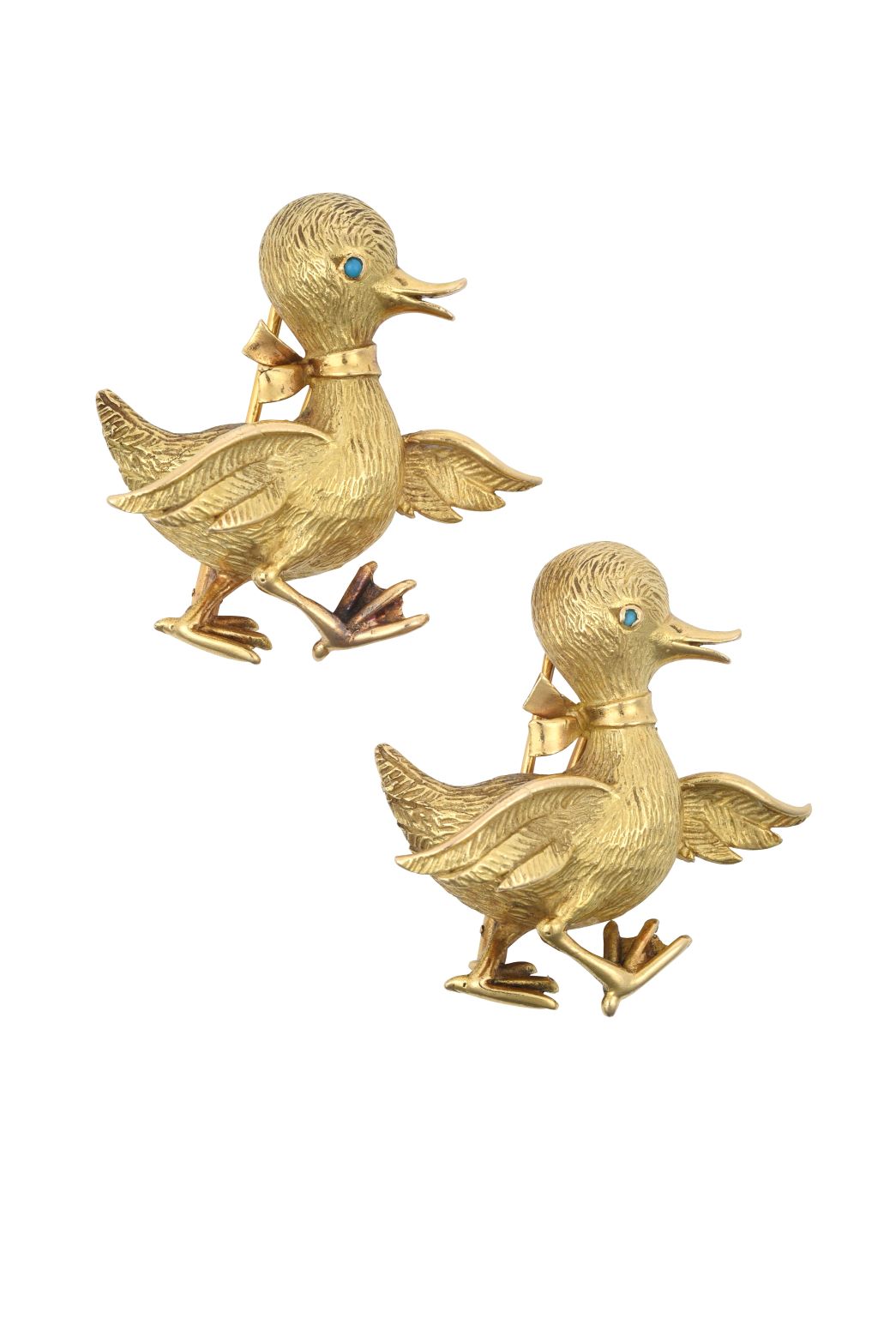 A good selection of modern designer jewellery was led by an 18 Carat White Gold Aquamarine and Diamond Necklace by Thomas A. Payne (sold for £2,000), and an 18 Carat Gold Tourmaline and Diamond Brooch by Alan Gard (sold for £2,800). Novelty brooches all sold well above estimate, too, with a Pair of Duckling Brooches by Boucheron selling for £3,000, and an 18 Carat Gold Ruby and Diamond Brooch in the form of a Squirrel by Kutchinsky selling for £2,200.