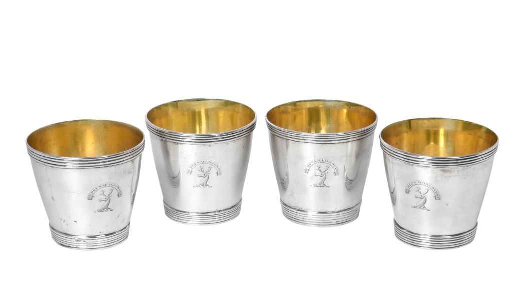 From the same family collection was a Graduated Set of Four Edward VII Silver Table Ornaments, made by Sir Bache Cunard circa 1905. Cunard registered his first mark with Goldsmiths’ Hall in 1901, and his works are incredibly rare, as he was presumably only making items for his family and friends. The ornaments, which are in the form of a branches and leaves, sold for £1,400. By Cunard, too, was an Edward VII Silver-Mounted Coconut Vessel, modelled as a stylised arachnid with a chased face (sold for £1,000). Also selling well in the Silver section of the sale were a Russian Gold-Mounted Silver-Gilt and Guilloché Enamel Pill Box by Fabergé (sold for £5,000), a Charles I Provincial Parcel-Gilt Silver Apostle Spoon by James Birkby, Hull, circa 1650 (sold for £4,200), a Set of Four George III Scottish Silver Beakers, Maker’s Mark RR, Edinburgh 1816 (sold for £2,200), and a George II Irish Silver Salver, Maker’s Mark HC, Dublin, circa 1740 (sold for £2,800).