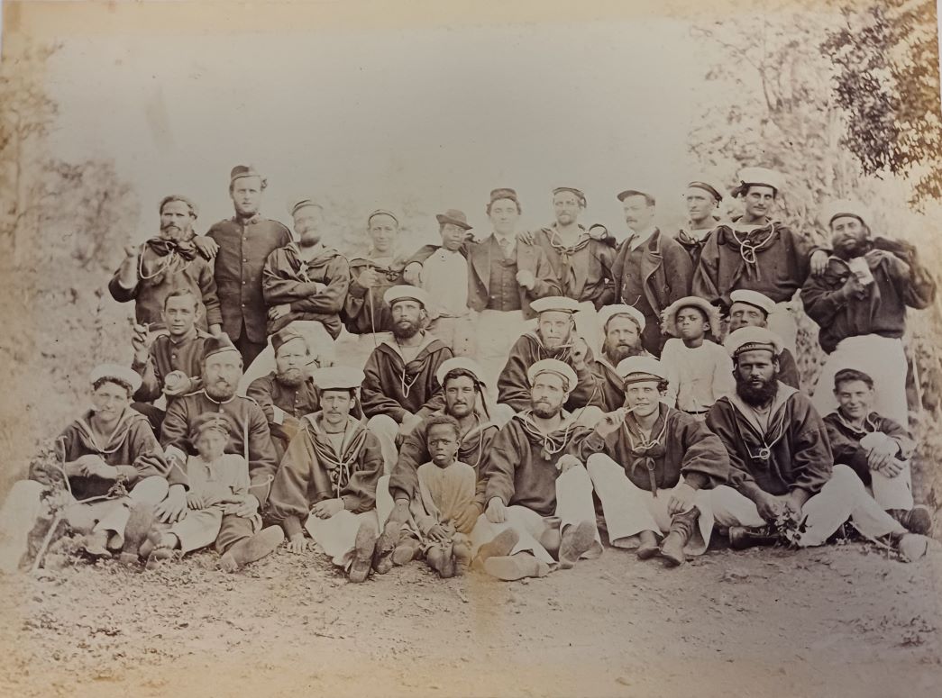 The album begins with a photograph of the team members before embarkation at Sheerness, and includes images of groups of officers, various ports of call around the world such as Madeira and Bermuda and a monument erected to a naval schoolmaster and a ‘Boy, First Class’ who had been killed in a dredging accident. The album is monogrammed 'JB', suggesting possible ownership to John Young Buchanan, chemist to the expedition.