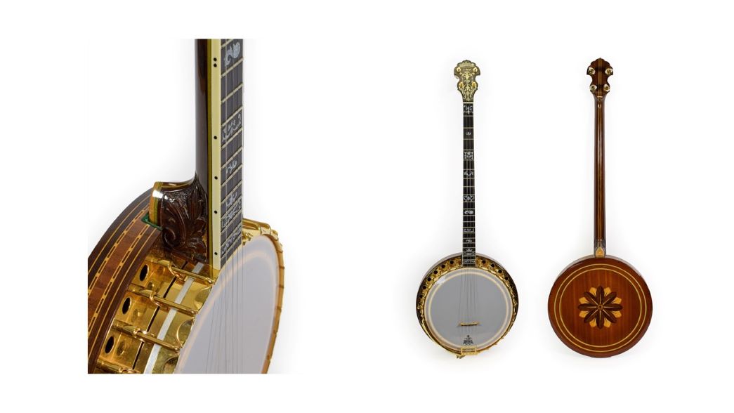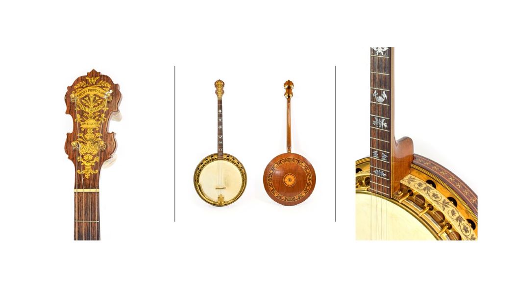 Part of a Private Collection of Banjos will be included in Tennants Auctioneers’ Scientific and Musical Instruments Sale on 26th May. The collection comprises ten banjos, mostly dating from the 1920s and 1930s, all in remarkably good condition for their age. Many of the banjos are highly decorated, with intricate inlaid, pierced and carved ornamentation, demonstrating the high levels of workmanship of the instrument makers.